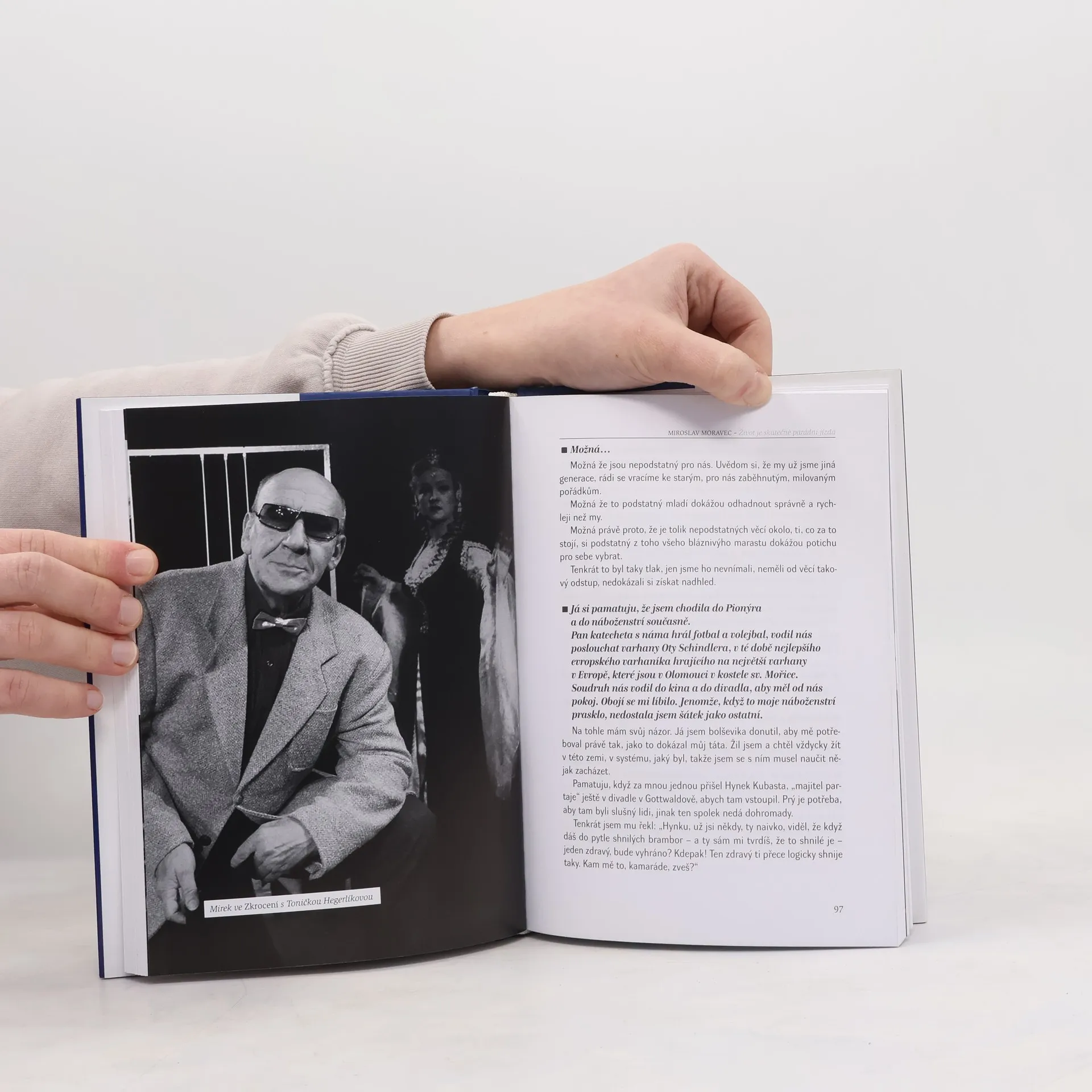 Už je to hezkých pár let, co se autorka knihy Miroslava Besserová shodla s hercem Miroslavem Moravcem na tom, že drobná parafráze jednoho z výroků spisovatele Fulghuma „Život je skutečně parádní jízda“ je fakt, a v tomto duchu začala psát s českým králem dabingu knížku rozhovorů. Kladla mu otázky a pan Moravec s chutí a entuziasmem sobě vlastním odpovídal, vzpomínal a glosoval některá svá setkání s „prarůznými“ lidmi, jak říkával těm, které nechtěl urazit, ale stáli za zmínku. A protože měl velice zvláštní, osobitý smysl pro humor a nechápající jím často urážel, dočtete se o mnoha zajímavostech a překvapivých poznání, o nichž díky svému nadhledu, vzdělanosti a moudrému pohledu na svět, proloženému pro všechny zúčastněné řadou nelogických zkratových jednání, vypráví jako o samozřejmých věcech.