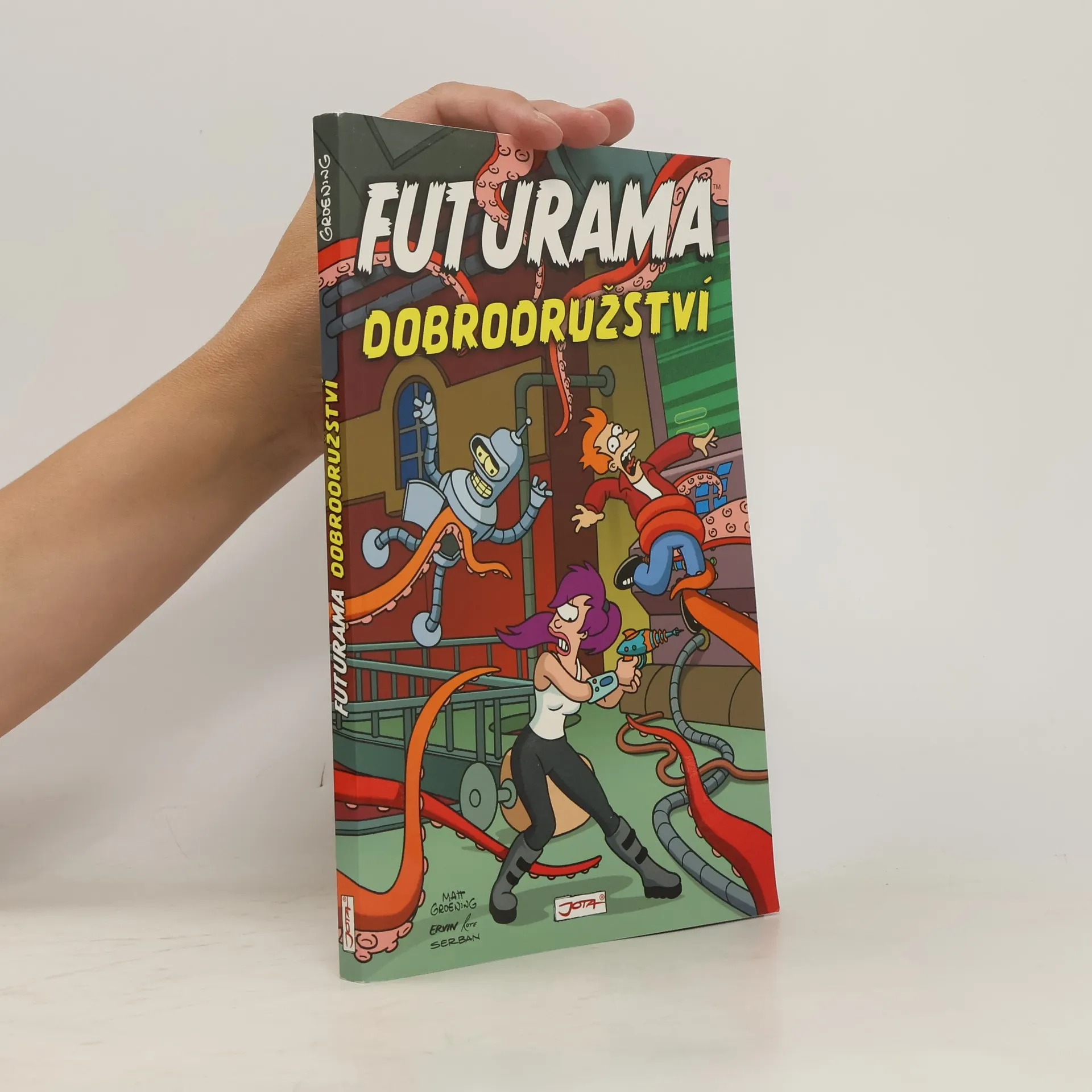 Pokud jste již netrpělivě očekávali další eskapády nejoblíbenější doručovací společnosti, máme pro vás DOBRÉ ZPRÁVY VESPOLEK! Všichni jsou tu, tentokrát dokonce v pěti epizodách, které nenechají váš mozek ani bránice zahálet. Jste fanoušky slavné trilogie X-MEN? Pak se jistě rádi seznámíte s Benderinem a Profesorem F. Myslíte si, že Vánoce jsou svátky klidu a pohody? Chyba! Na Nový New York se chystá Robosanta Claus spolčený s Roboďáblem, kterým (jak jinak) pomáhá náš milý a touhou po alkoholu posedlý Bender. Zdá se vám Silvestr nudný? Pořiďte si profesorův Cokdybytor a mrkněte, jak se stal Zoidberg prezidentem Zeměkoule. Umíte se představit na místě Vladimíra Čecha v kdysi velmi oblíbené soutěži „Kdo chce být milionářem“ krvelačného Morba? Ne? Pak si rozhodně musíte pořídit v pořadí již třetí díl komiksu Matta Groeninga, ještě vtipnější, bláznivější a inteligentnější než ty předcházející, třebaže se to už zdálo nemožné.