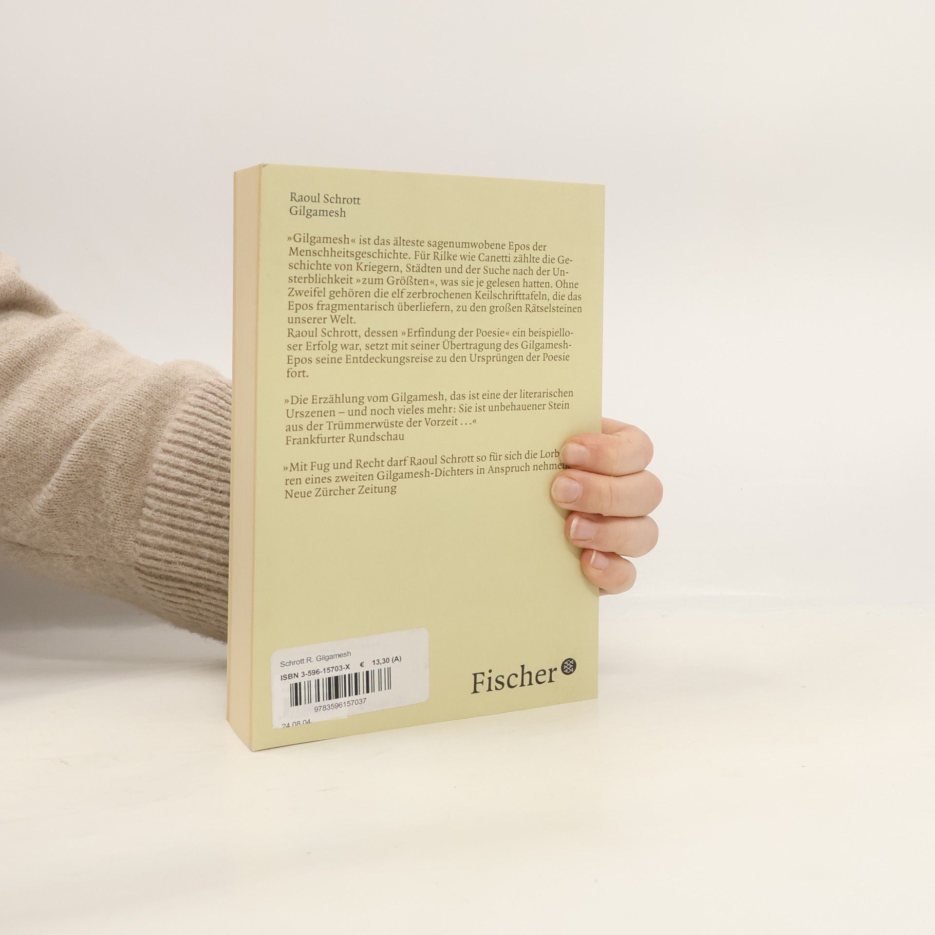 „Gilgamesh“ ist das älteste Epos der Menschheitsgeschichte, das für Rilke wie für Canetti „zum Größten zählte“, was sie je gelesen hatten. Um 3000 v. Chr. im Zweistromland entstanden, erzählt es eine Geschichte von Kampf und Schamanismus, Kriegern und Städten, der Suche des Menschen nach Unsterblichkeit. Der Dichter Raoul Schrott hat seiner genauen Übersetzung des fragmentarisch überlieferten Epos eine poetische Übertragung zur Seite gestellt, die die Geschichte für heutige Leser lebendig werden lässt, ihren Gestalten neues Fleisch und Blut verleiht.