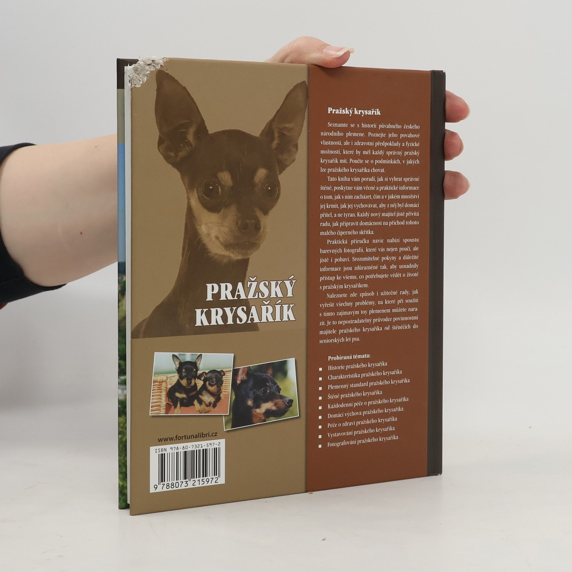 Seznamte se s historií půvabného českého národního plemene. Poznejte jeho povahové vlastnosti, ale i zdravotní předpoklady a fyzické možnosti, které by měl každý správný pražský krysařík mít. Poučte se o podmínkách, v jakých lze pražského krysaříka chovat. Tato kniha vám poradí, jak si vybrat správné štěně, poskytne vám věcné a praktické informace o tom, jak s ním zacházet, čím a v jakém množství jej krmit, jak jej vychovávat, aby z něj byl domácí přítel, a ne tyran. Každý nový majitel jistě přivítá radu, jak připravit domácnost na příchod tohoto malého čiperného skřítka. Praktická příručka vám navíc nabízí spoustu barevných fotografií, které vás nejen poučí, ale jistě i pobaví. Srozumitelné pokyny a důležité informace jsou zdůrazněné tak, aby usnadnily přístup ke všemu, co potřebujete vědět o životě s pražským krysaříkem. Naleznete zde způsob i užitečné rady, jak vyřešit všechny problémy, na které při soužití s tímto zajímavým toy plemenem můžete narazit. Je to nepostradatelný prův