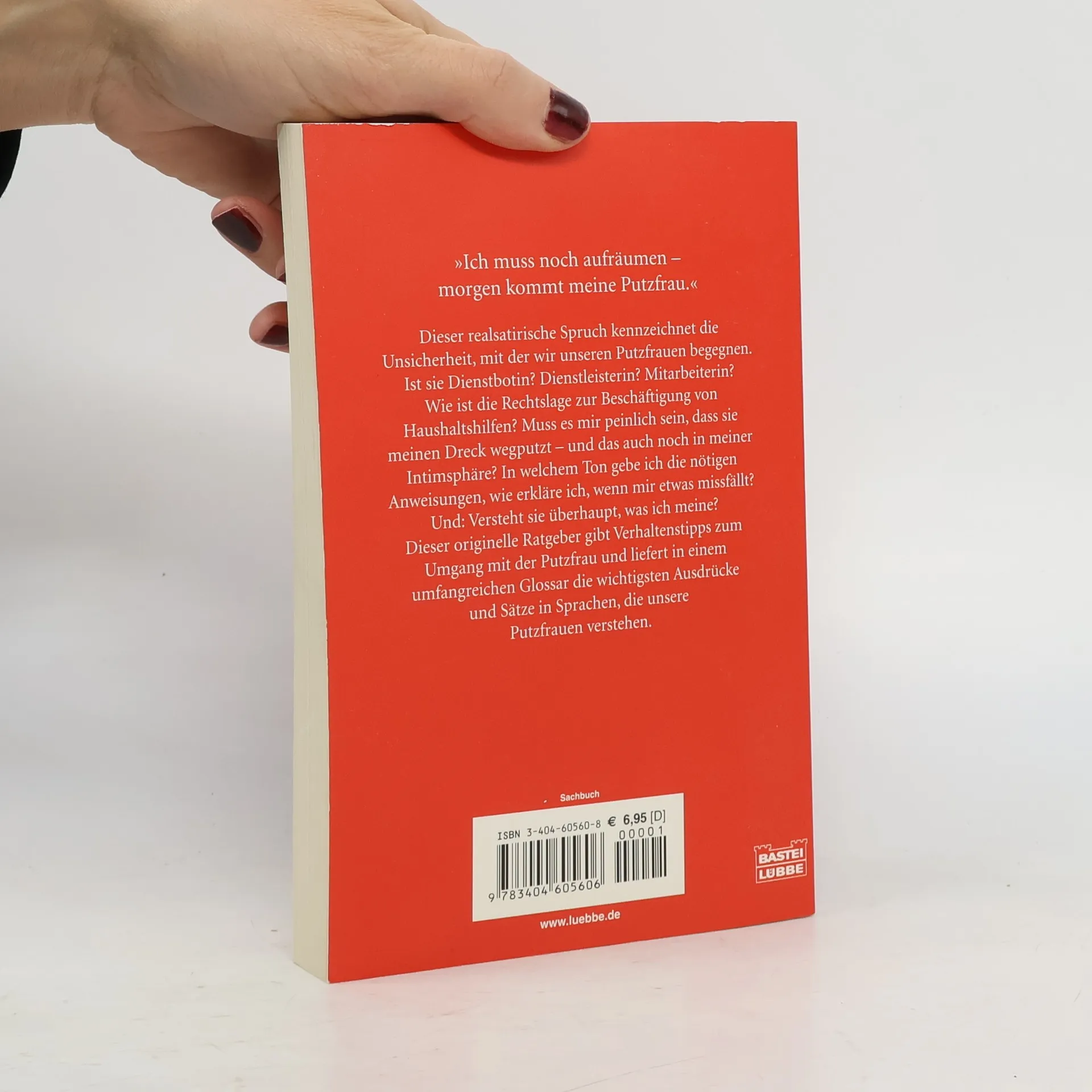Ich muss noch aufräumen - morgen kommt meine Putzfrau. Dieser realsatirische Spruch kennzeichnet die Unsicherheit, mit der wir unseren Putzfrauen begegnen. Ist sie Dienstbotin? Dienstleisterin? Mitarbeiterin? Muss es mir peinlich sein, dass sie meinen Dreck wegputzt - und das auch noch in meiner Intimsphäre? In welchem Ton gebe ich die nötigen Anweisungen, wie erkläre ich, wenn mir etwas missfällt? Und: Versteht sie überhaupt, was ich meine? Dieser originelle Ratgeber gibt Verhaltenstipps zum Umgang mit der Putzfrau und liefert in einem umfangreichen Glossar die wichtigsten Ausdrücke und Sätze in den häufigsten Sprachen, die unsere Putzfrauen beherrschen. Das ideale Geschenk für alle, die sich eine Putzfrau leisten.