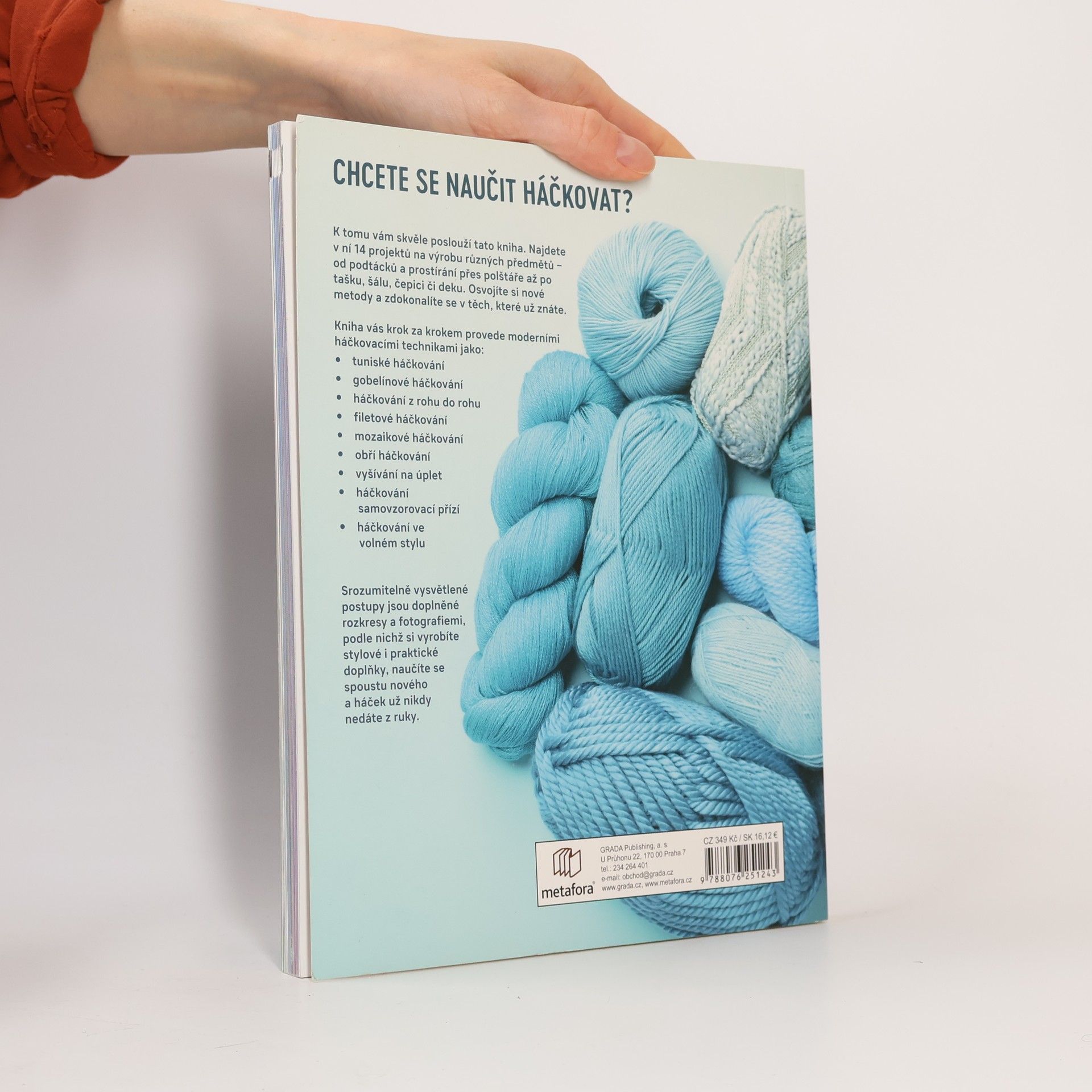 Chcete se naučit háčkovat, jako to uměla babička, ale přitom si vyrobit něco, co jde s dobou? K tomu vám skvěle poslouží tato kniha! Najdete v ní 14 projektů na výrobu různých předmětů – od podtácků a prostírání přes polštáře až po tašku, šálu, čepici či deku. Osvojíte si nové metody a zdokonalíte se v těch, které už znáte. Kniha vás krok za krokem provede moderními háčkovacími technikami jako: · tuniské háčkování · gobelínové háčkování · háčkování z rohu do rohu · filetové háčkování · mozaikové háčkování · obří háčkování · vyšívání na úplet · háčkování samovzorovací přízí · tuniský entrelac · háčkování ve volném stylu … a to jenom začátek! Srozumitelně vysvětlené postupy jsou doplněné rozkresy a fotografiemi, podle nichž si vyrobíte stylové i praktické doplňky, naučíte se spoustu nového a háček už nikdy nebudete chtít pustit z ruky.