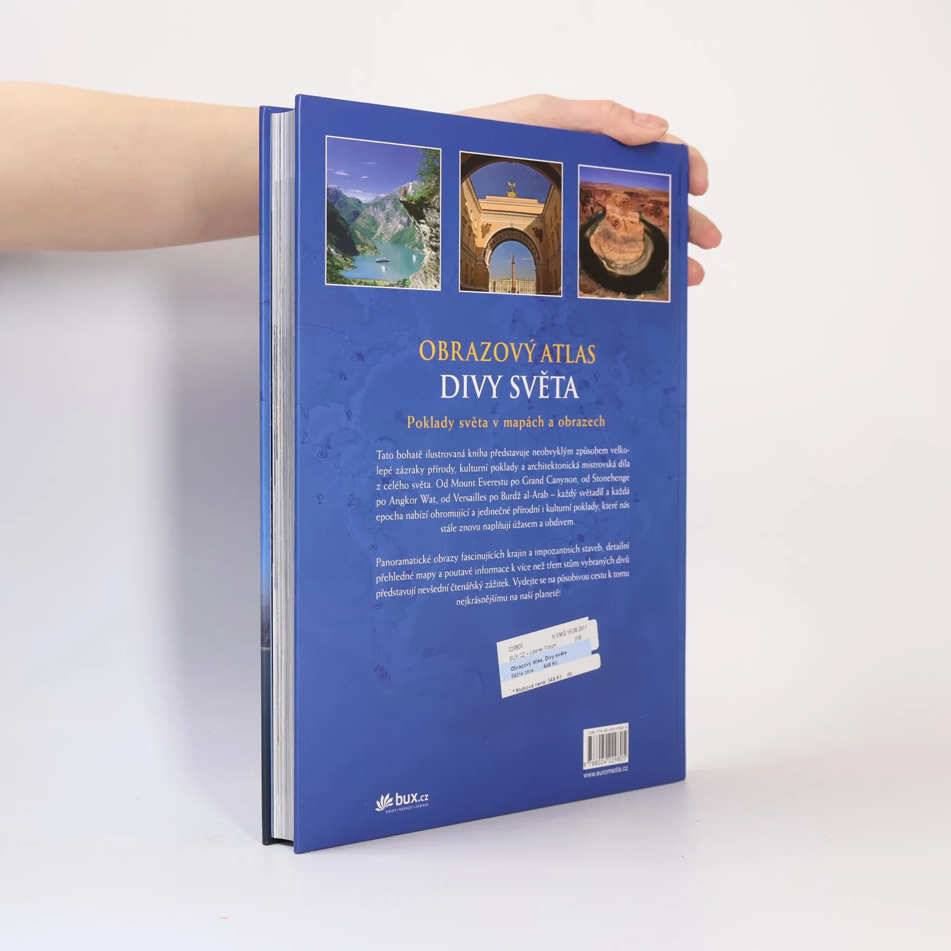 Obrazový atlas divů světa nabízí obrazy plné nádherných barev, poutavé informace a podrobné mapy k více než 300 nejpozoruhodnějších divů světa ze všech světadílů a epoch. Přehledné mapy a vysvětlující komentáře v rámečcích doplňují poutavě podávané základní informace o stavbách a krajinách. Tato bohatě ilustrovaná kniha nadchne každého, kdo se zajímá o kulturu a kdo rád cestuje do dalekých končin!
