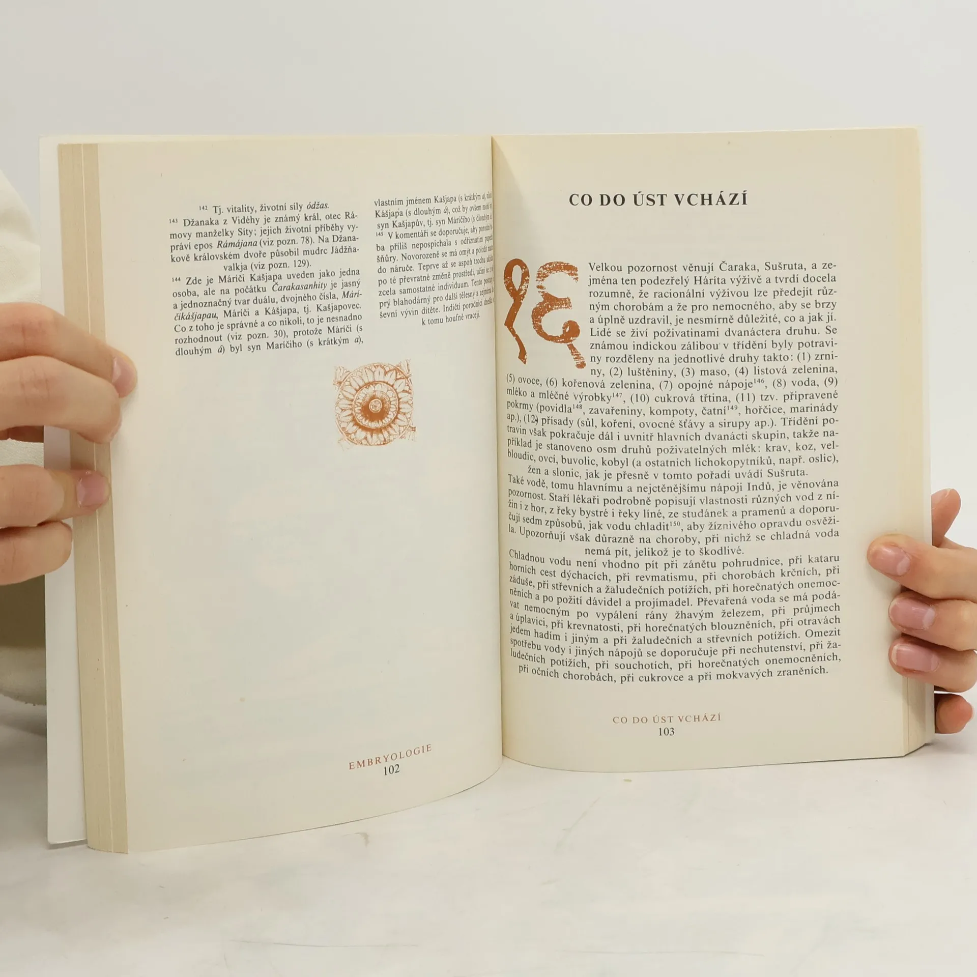 Důkladné, odborné, mnohými poznámkami vybavené pojednání o starodávném lékařském učení, které vzniklo a tradovalo se v Indii. Je neodmyslitelně spojené s indickým náboženským a duchovním životem. Není však založené na pověrách, ale na neobyčejném přesném a citlivém pozorovaní pochodů v lidském organismu.