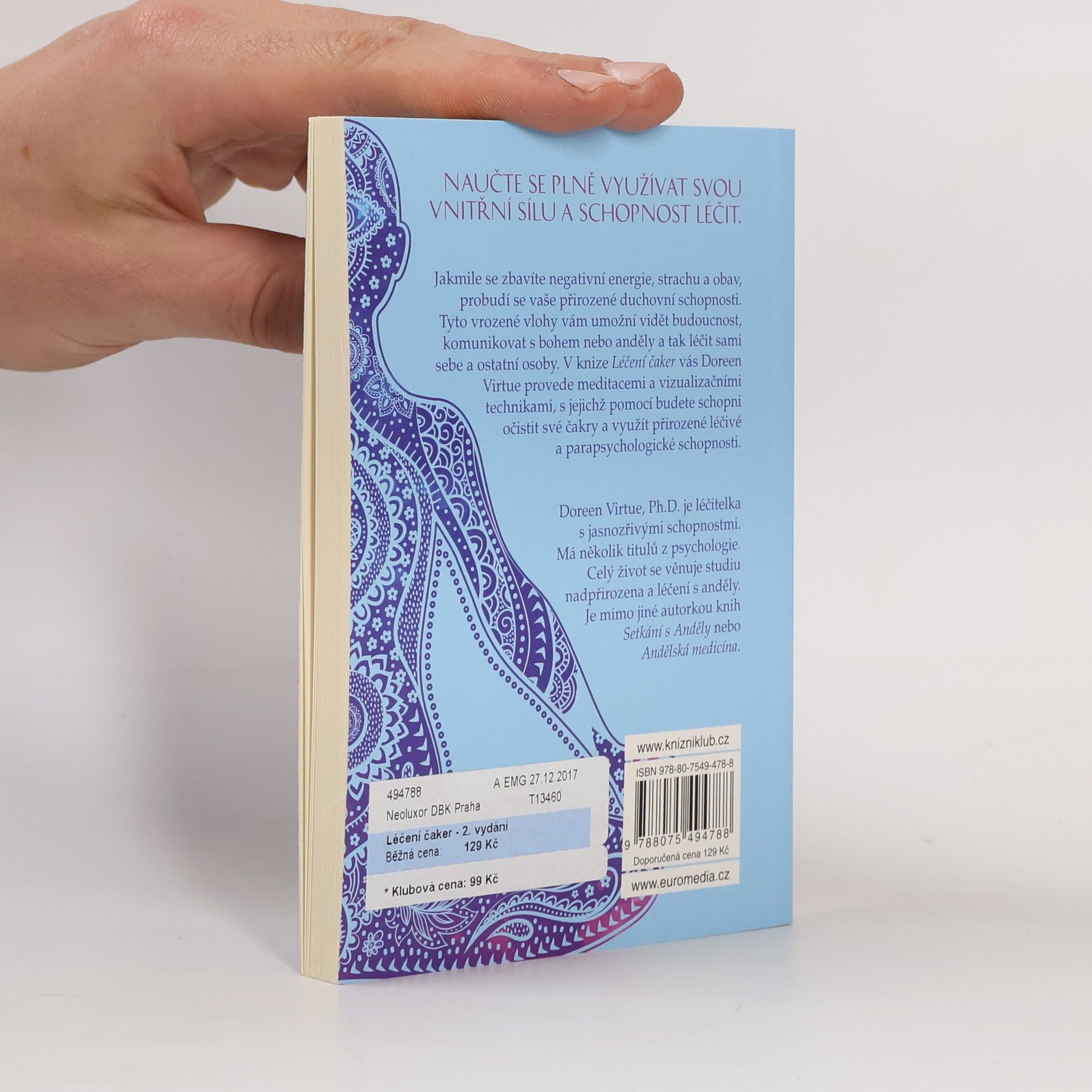 Probuďte svou vnitřní sílu a dar léčit. Naučte se plně využívat svou vnitřní sílu a schopnost léčit. Jakmile se zbavíte negativní energie, strachu a obav, probudí se vaše přirozené duchovní schopnosti. Tyto vrozené vlohy vám umožní vidět budoucnost, komunikovat s bohem nebo anděly a tak léčit sami sebe a ostatní osoby. V knize Léčení čaker vás Doreen Virtue provede meditacemi a vizualizačními technikami, s jejich pomocí budete schopni očistit své čakry a využít přírozené léčivé a parapsychologické schopnosti.