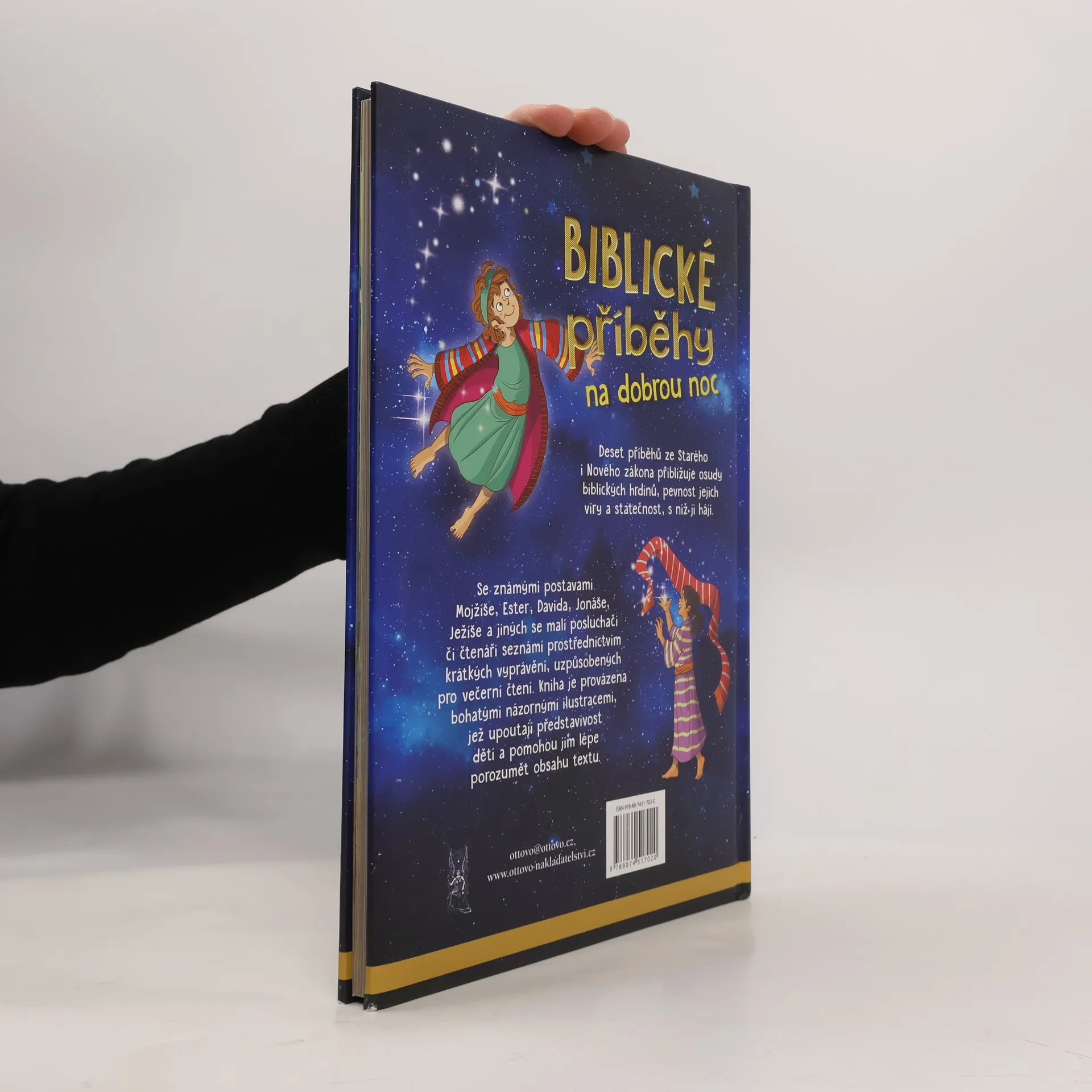 Čti mi před spaním… prosím! S Biblickými příběhy na dobrou noc mohou děti, než se uloží ke spánku, příjemně zakončit den. Díky textu, který děti snadno osloví, a ilustracím, které upoutají dětskou představivost, se Biblické příběhy na dobrou noc stanou oblíbenou knížkou, na niž se budou každý večer těšit. Deset příběhů ze Starého i Nového zákona jim přiblíží osudy biblických hrdinů, pevnost jejich víry a statečnost, s níž ji hájí. Tato vyprávění budou mít děti ještě raději, budou-li si je číst s někým, kdo je má rád.