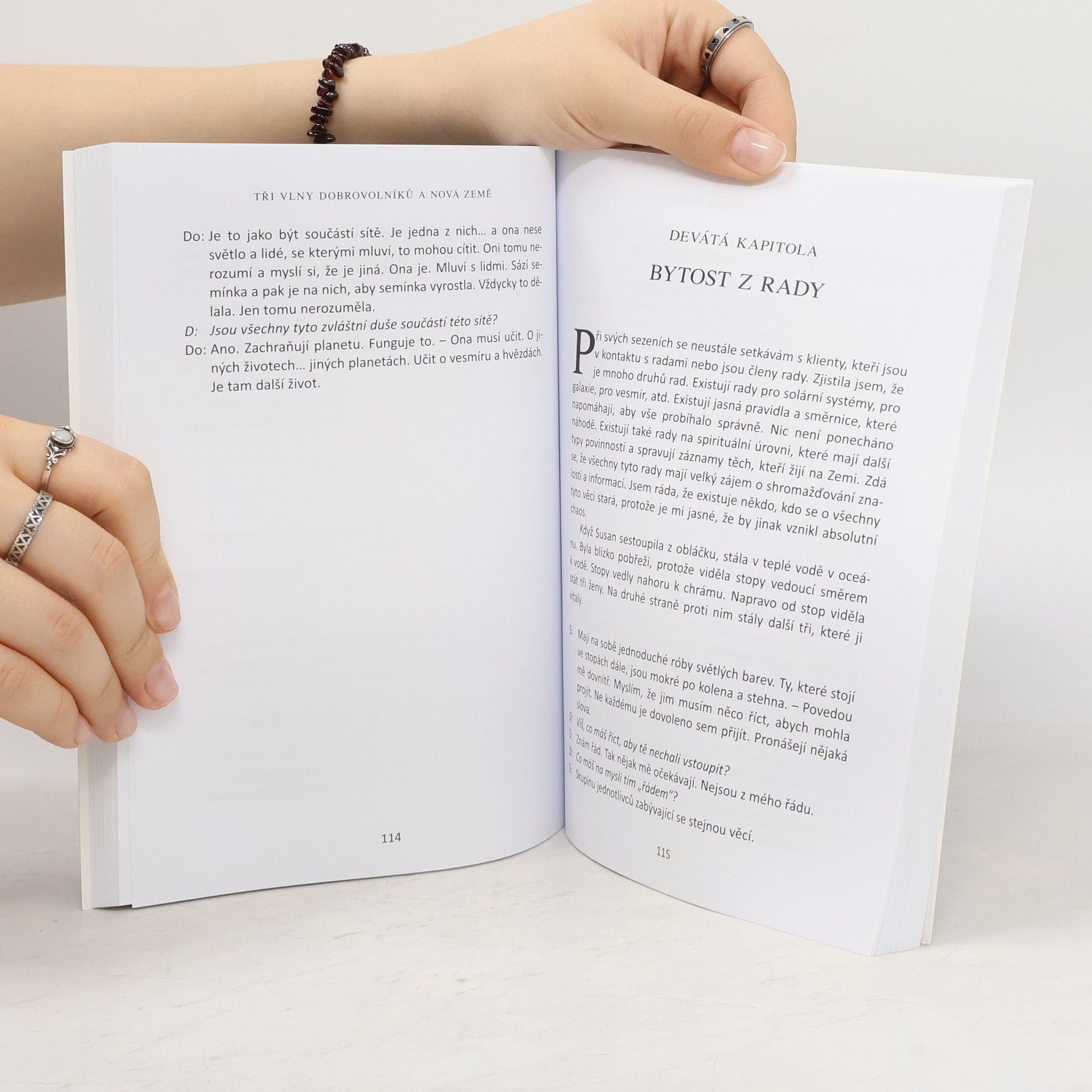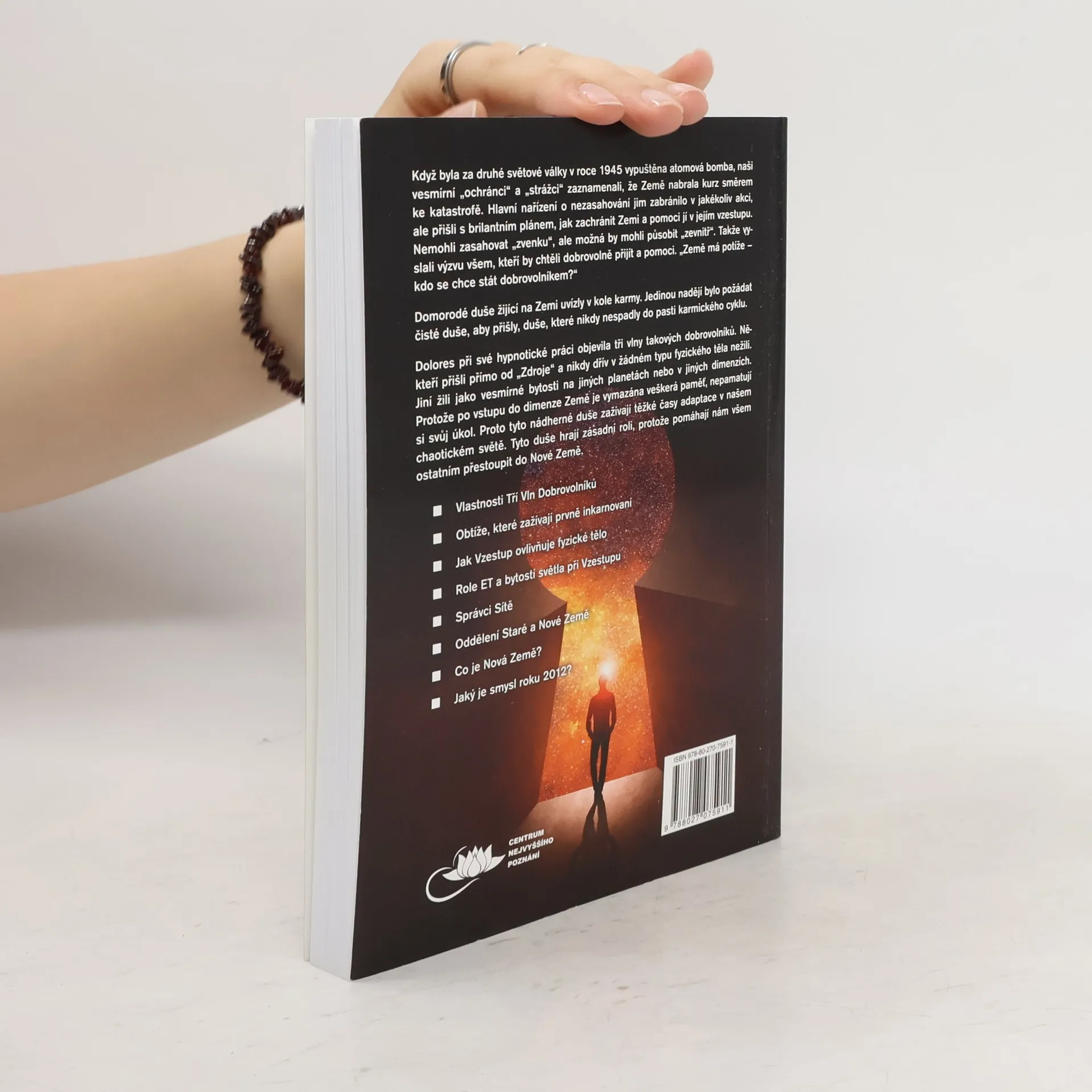 V roce 1945, když byla za druhé světové války vypuštěna atomová bomba, naši „ochránci“ a „strážci“ ve vesmíru zjistili, že Země nabrala kurz směrem ke katastrofě. Hlavní nařízení o nezasahování jim zabránilo v jakékoliv akci, ale přišli s brilantním plánem, jak zachránit Zemi a pomoci jí v jejím vzestupu. Nemohli zasahovat „zvenku“, ale možná by mohli působit „zevnitř“. Takže vyslali výzvu všem, kteří by chtěli dobrovolně přijít na pomoc. „Země má potíže – kdo se chce stát dobrovolníkem?“ Domorodé duše žijící na Zemi uvízly v kole karmy. Jedinou nadějí bylo požádat čisté duše, aby přišly, duše, které nikdy nespadly do pasti karmického cyklu. Dolores při její hypnotické práci objevila tři vlny takových dobrovolníků. Někteří přišli přímo od „Zdroje“ a nikdy dřív v žádném typu fyzického těla nežili. Jiní žili jako vesmírné bytosti na jiných planetách nebo v jiných dimenzích. Protože po vstupu do dimenze Země je vymazána veškerá paměť, nepamatují si svůj úkol. Proto tyto nádherné duše zažívají těžké časy adaptace v našem chaotickém světě. Tyto duše hrají zásadní roli, protože pomáhají nám všem ostatním přestoupit do Nové Země. Vlastnosti Tří Vln Dobrovolníků Obtíže, které zažívají prvně-inkarnovaní Jak Vzestup ovlivňuje fyzické tělo Role ET a bytostí světla při Vzestupu Správci Sítě Co je Nová Země? Jaký je smysl roku 2012?
