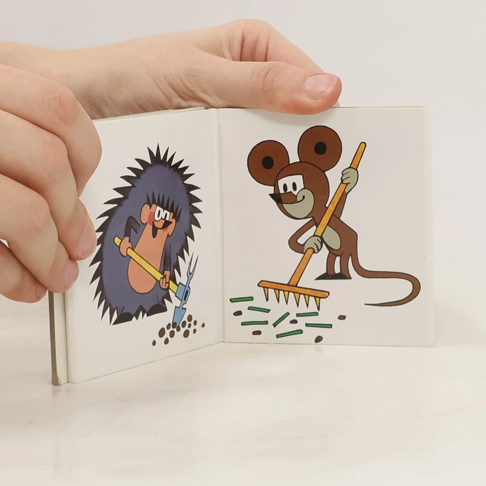 Je jaro a oblíbené postavičky Krtek, myška, ježek a zajíček se vydají pracovat na zahrádku. Nejdříve ji upraví, zasadí kytičky a potom už jen konzumují sklizené plody. Malé leporelo se 14 ilustracemi umožňuje malým dětem ve spolupráci s rodiči rozvíjet slovní zásobu o základních činnostech a poznávat některé ovoce a zeleninu.