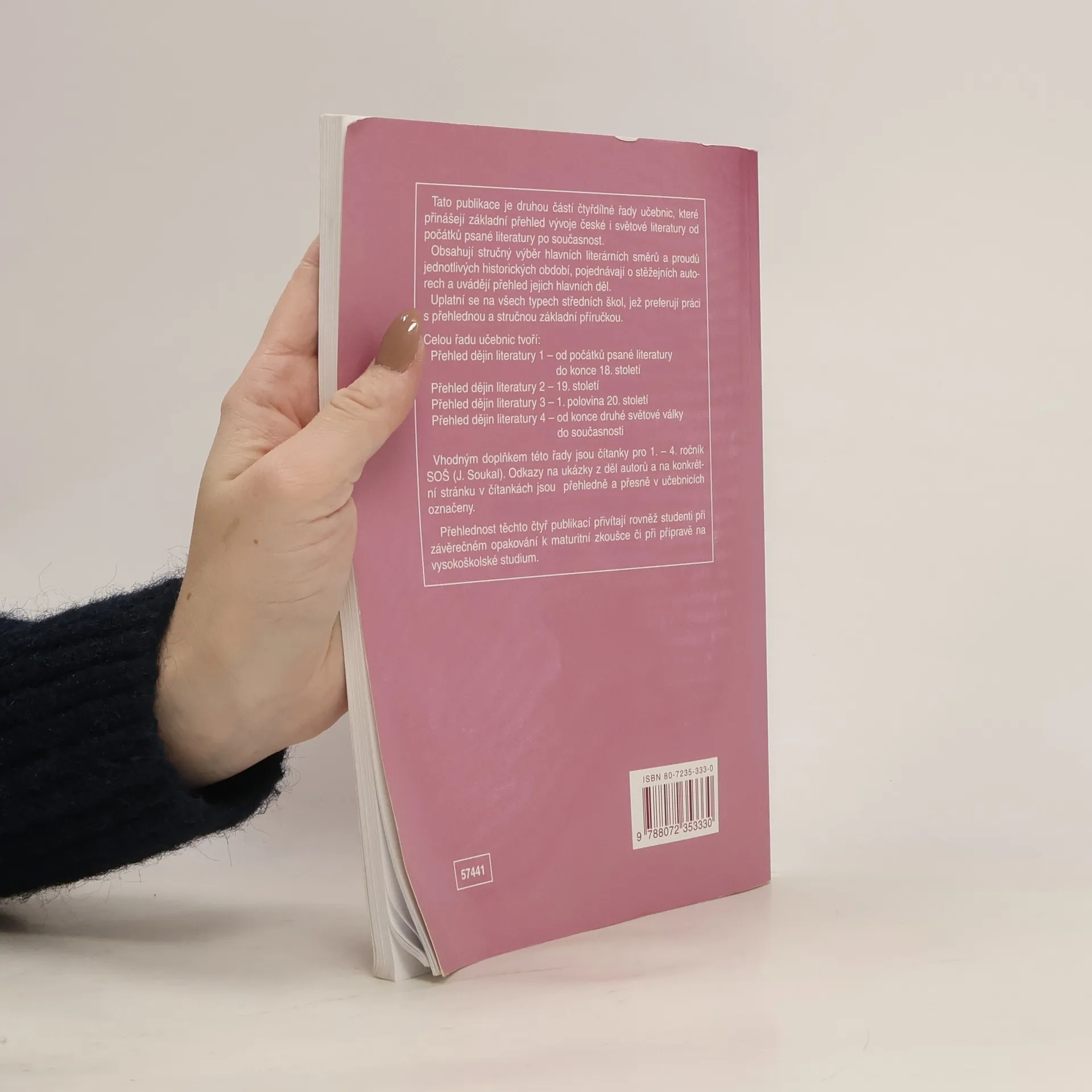 Tato publikace je druhou částí čtyřdílné řady učebnic, které přinášejí základní přehled vývoje české i světové literatury od počátků psané literatury po současnost. Obsahují stručný výběr hlavních literárních směrů a proudů jednotlivých historických období, pojednávají o stěžejních autorech a uvádějí přehled jejich hlavních děl. Uplatní se na všech typech středních škol, jež preferují práci s přehlednou a stručnou základní příručkou.