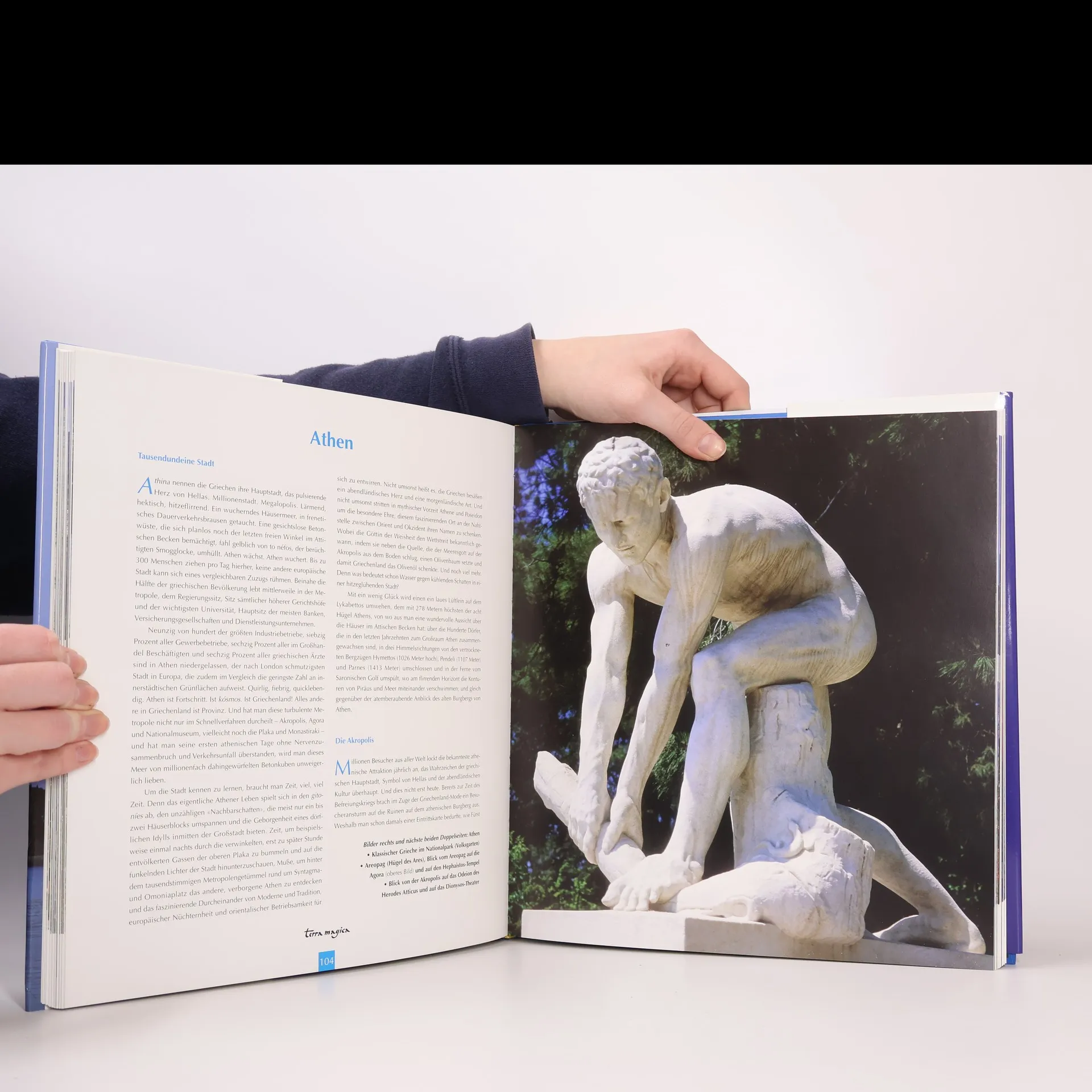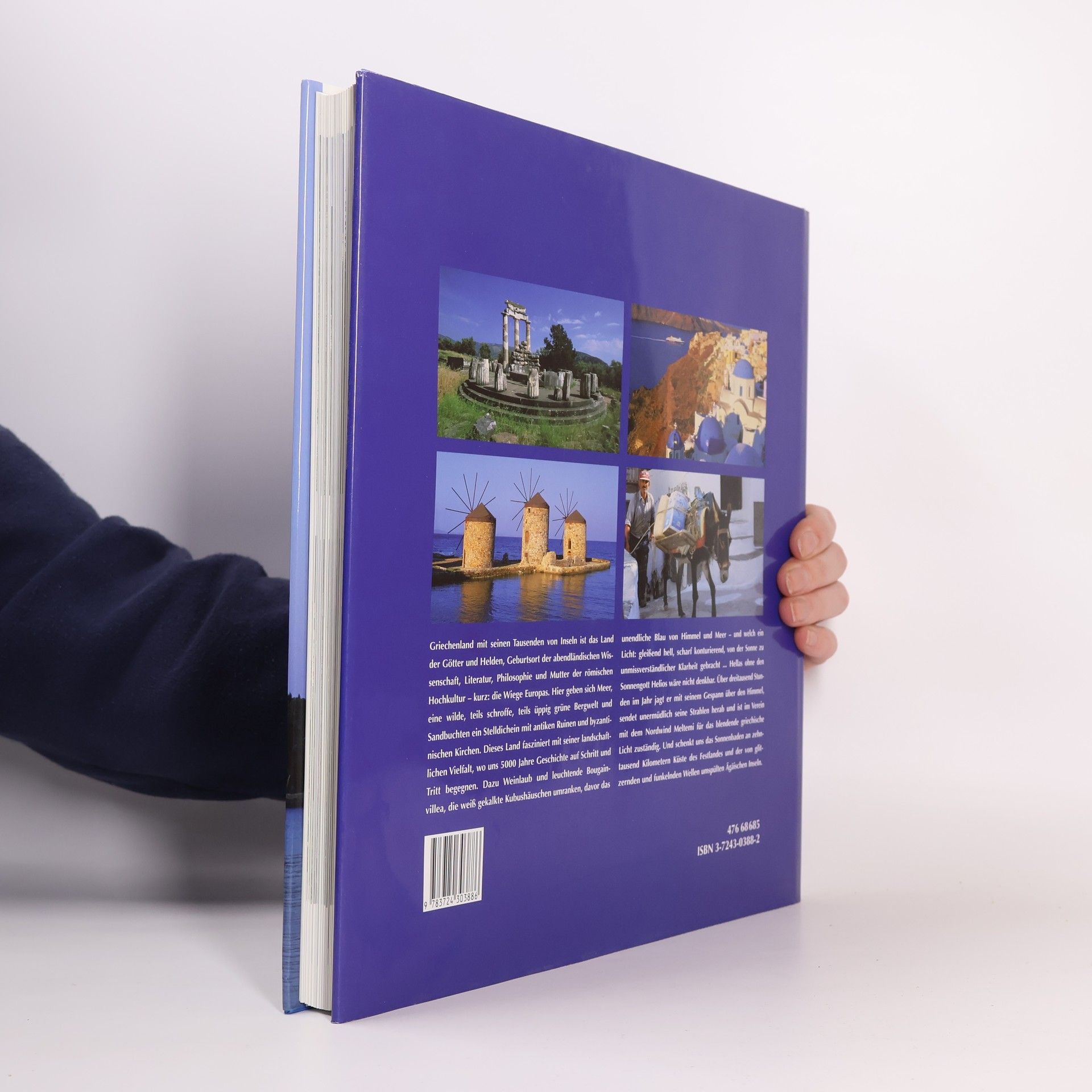 776 v. Chr. sind die ersten Sportwettkämpfe bezeugt – in der Stadt Olympia in Griechenland. Es ist die Zeit, da Zeus in Stiergestalt die schöne Europa auf seine Hörner nimmt und auf die griechische Insel Kreta entführt. Griechenland – das sind Tausende sonnendurchflutete Inseln, über 10 000 km Meeresküste und eine wilde Bergwelt, teils schroff, teils mit üppig grüner Natur. Es ist das Land der Götter und Helden, Geburtsort der abendländischen Wissenschaft, Literatur, Philosophie und Mutter der römischen Hochkultur – kurz: die Wiege Europas. Auf einer Reise zu Hellas' Küsten des Lichts geben sich blaues Meer, olivengrüne Berge und sonnige Sandbuchten ein Stelldichein mit antiken Ruinen und byzantinischen Kirchen. Weinlaub und leuchtende Bougainvillea, die weiß gekalkte Kubenhäuschen umranken, davor das unendliche Blau von Himmel und Meer, und welch ein Licht: gleißend hell, scharf konturierend, von der Sonne zu unmissverständlicher Klarheit gebracht. Hellas ohne den Sonnengott Helios wäre nicht denkbar! Über 3000 Stunden im Jahr jagt er mit seinem Gespann über den Himmel, sendet unermüdlich seine Strahlen herab und ist im Verein mit dem Nordwind Meltemi für das blendende griechische Licht zuständig.