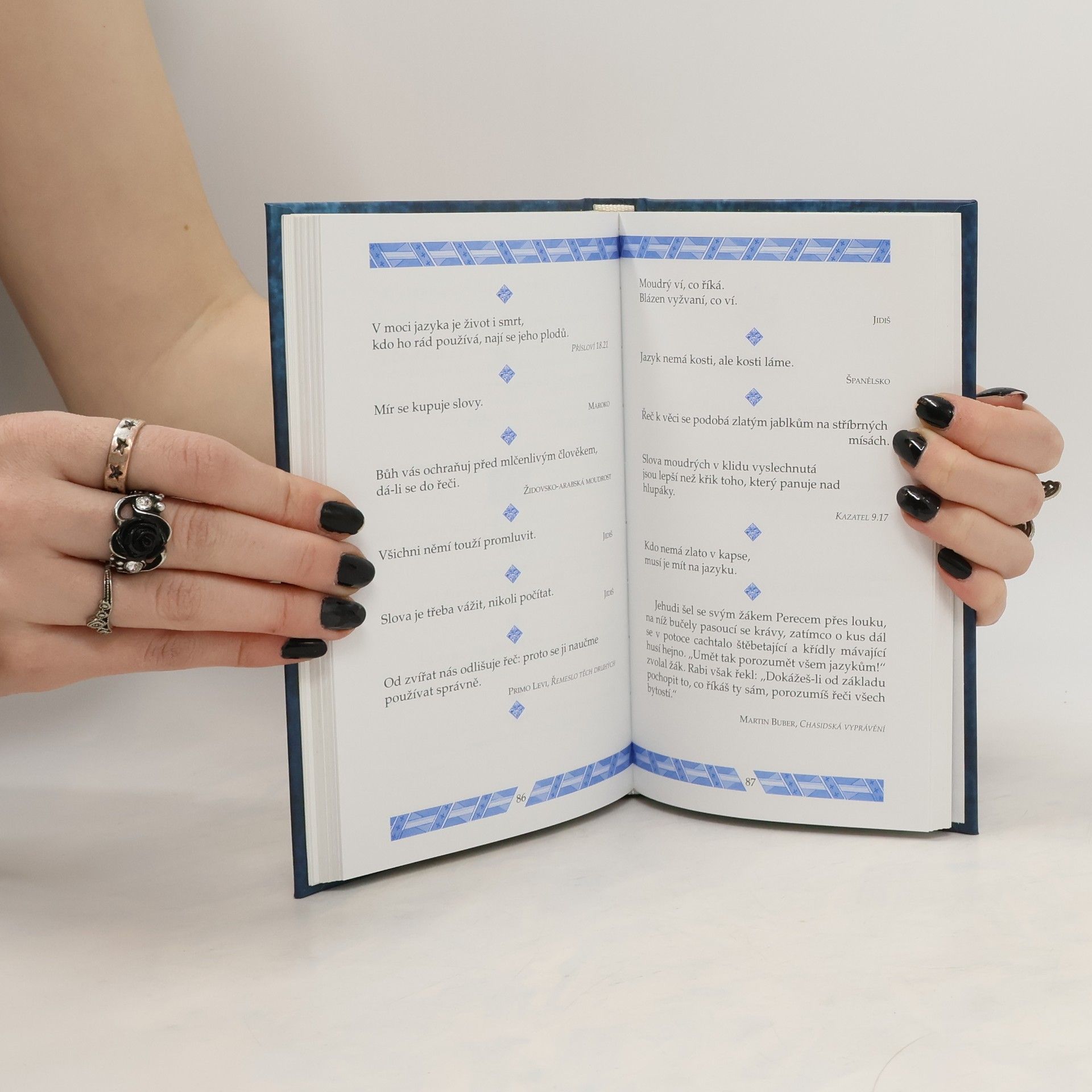 Židovská moudrost, která je zhuštěna v tomto svazku, je představena citáty (moudrými, humornými, satirickými i podněcujícími k zamyšlení) a příslovími, jež poskytují příležitost lépe chápat židovskou kulturu. Jsou tu obsaženy citáty od různých židovských autorů i anonymní přísloví z různých období a oblastí světa. V knize jsou seskupeny podle témat (žena a muž, láska a rodina, rodiče a děti, ctnosti, smutek a radost, zkušenosti a rozum, smích...). Kniha potěší všechny, kdo se chtějí pobavit a poučit moudrými i humornými myšlenkami a citáty, které reprezentují jednu z nejstarších světových kultur.