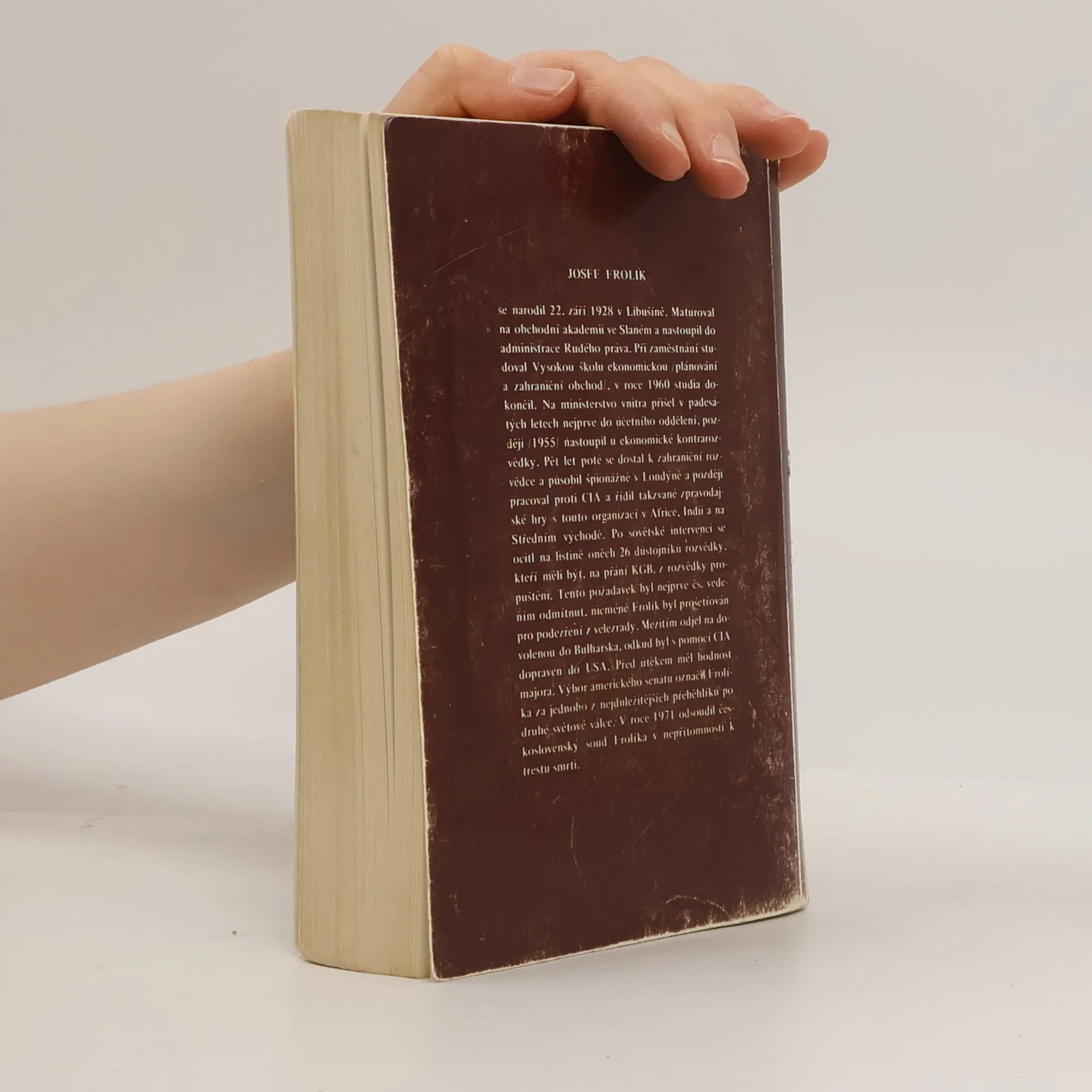 V České republice vyšly dvě jeho pamětní knihy, Špion vypovídá a Špion vypovídá II, dle kterých se česká veřejnost poprvé dozvěděla o špionážních praktikách československé rozvědky. Roku 1947 vstupuje Frolík do KSČ. Už v roce 1948 se rozhodl svědčit proti jednomu ze svých profesorů. Profesor Gargel byl nakonec označen za reakcionáře a odsouzen ke třem měsícům vězení. Roku 1955 přešel na IV. správu ministerstva vnitra (ekonomická rozvědka) a o pět let později dokonce na I. správu. Zde působil v letech 1964-1966 na rezidentuře v Londýně. V následujících letech se zaměřil na špionáže a zpravodajské hry, zaměřené proti CIA. Po roce 1968 se však rozhodl nasbírat co nejvíce tajných informací a s pomocí CIA se roku 1969 nakonec daří uprchnout.