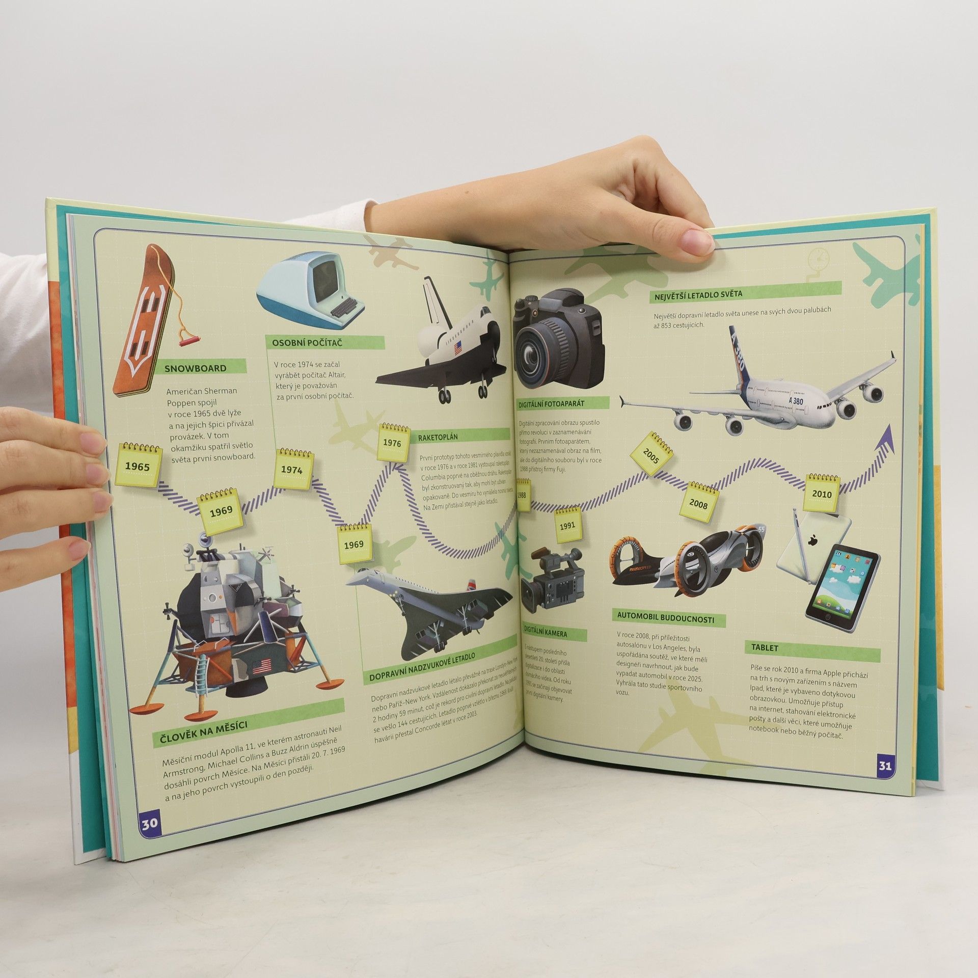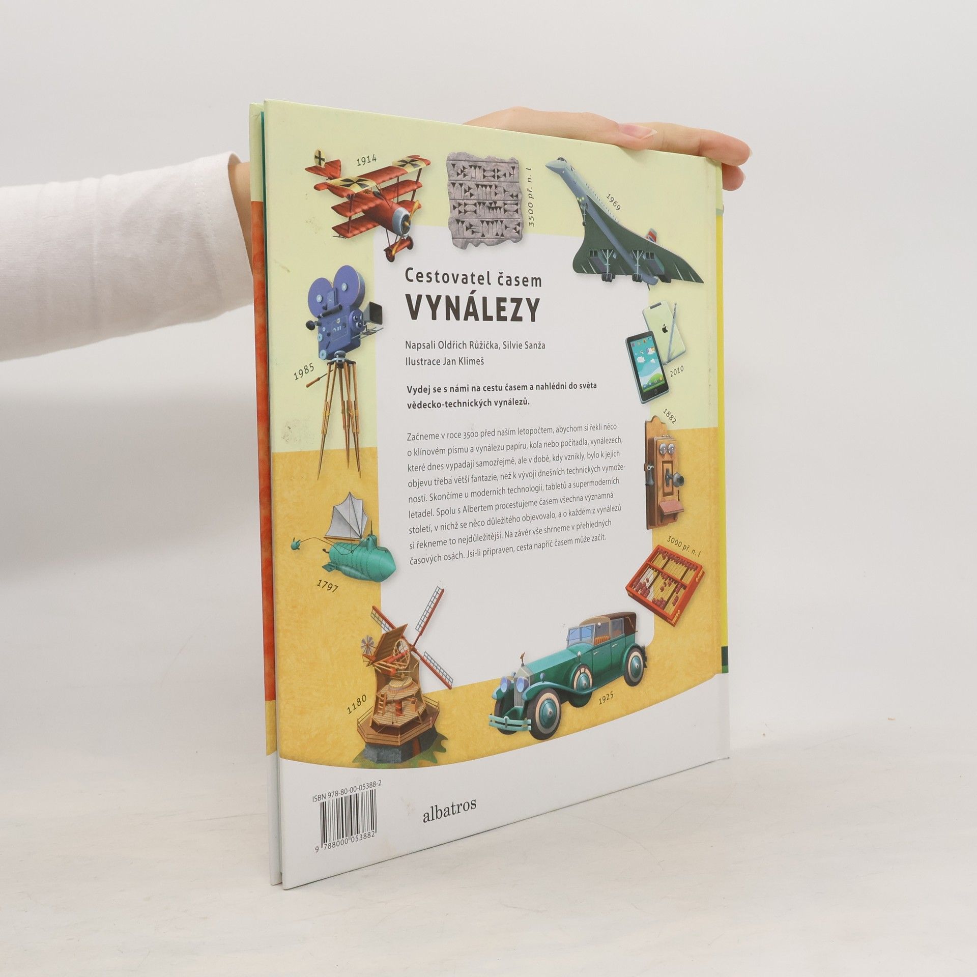 Začneme v roce 3500 před naším letopočtem, abychom si řekli něco o klínovém písmu a vynálezu papíru, kola nebo počítadla. Vynálezů, které dnes vypadají samozřejmě, ale v době, kdy vznikly, bylo k jejich objevu třeba větší fantazie, než k vývoji dnešních technických vymožeností. Skončíme u moderních technologií, tabletů a supermoderních letadel. Spolu s Albertem procestujeme časem všechna významná století, v nichž se něco důležitého vynalézalo a o každém vynálezů si řekneme to nejdůležitější.