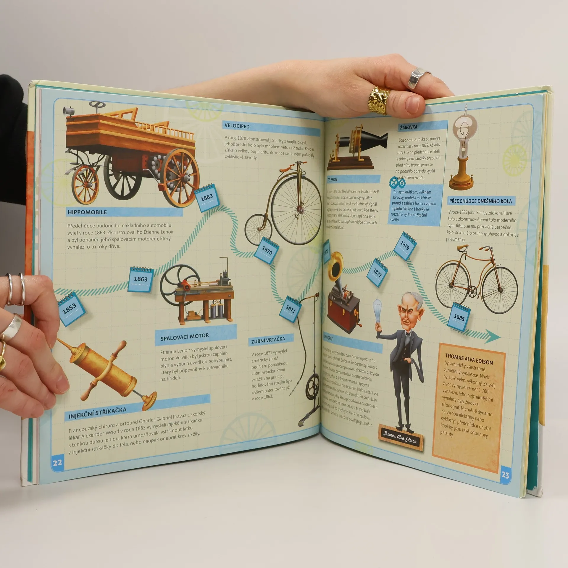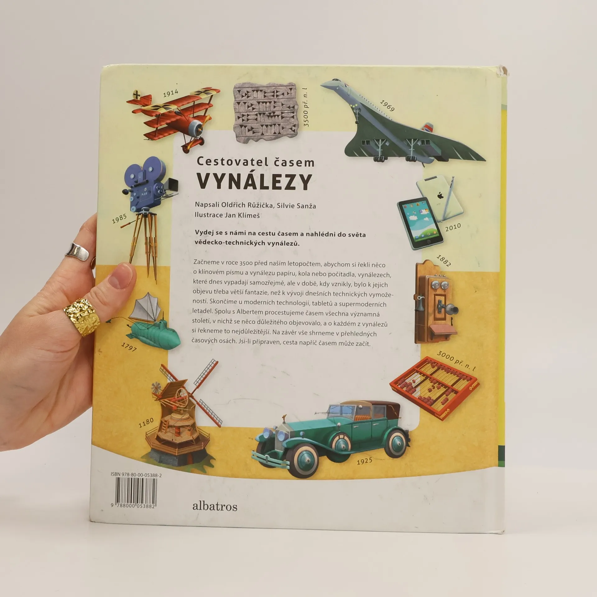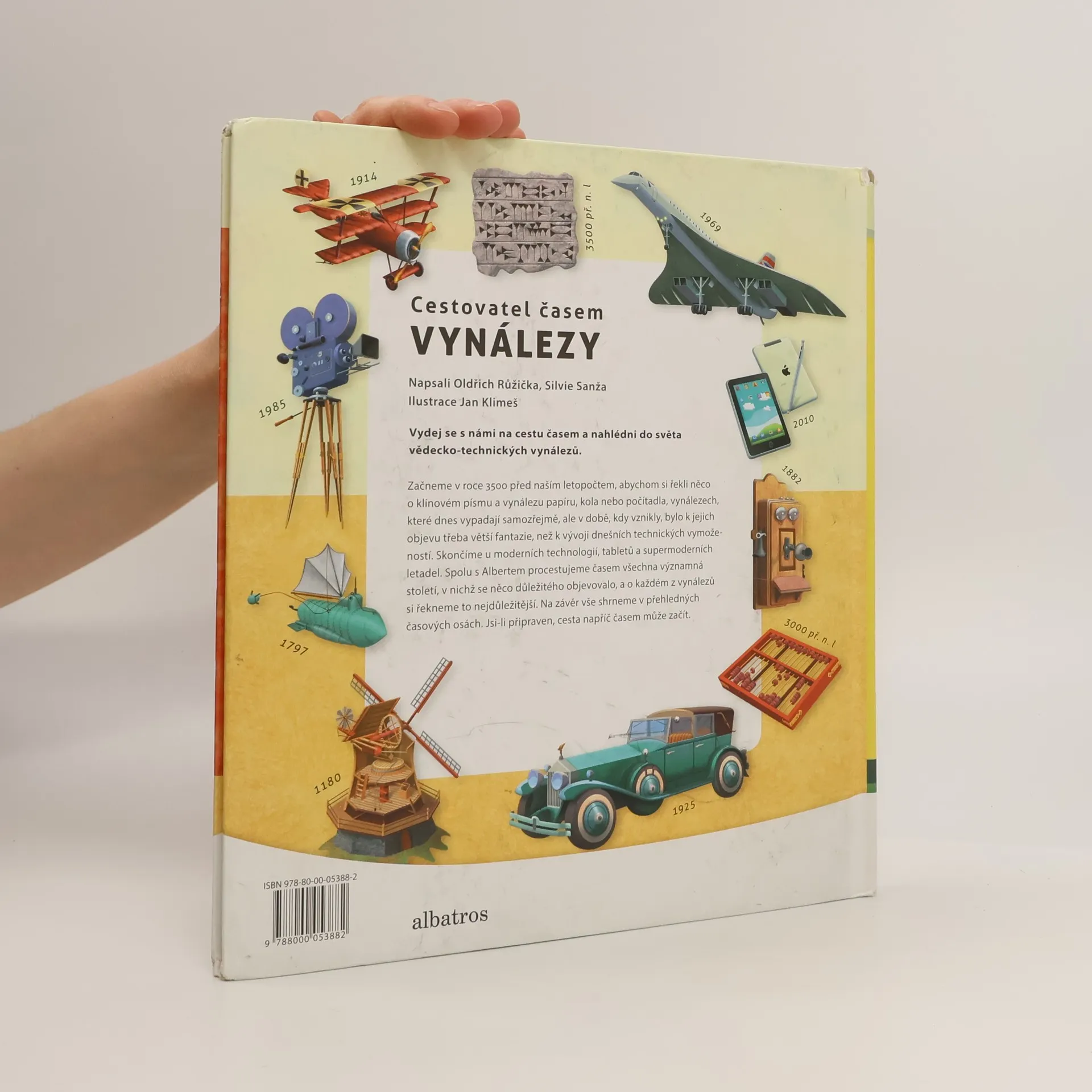 Začneme v roce 3500 před naším letopočtem, abychom si řekli něco o klínovém písmu a vynálezu papíru, kola nebo počítadla. Vynálezů, které dnes vypadají samozřejmě, ale v době, kdy vznikly, bylo k jejich objevu třeba větší fantazie, než k vývoji dnešních technických vymožeností. Skončíme u moderních technologií, tabletů a supermoderních letadel. Spolu s Albertem procestujeme časem všechna významná století, v nichž se něco důležitého vynalézalo a o každém vynálezů si řekneme to nejdůležitější.