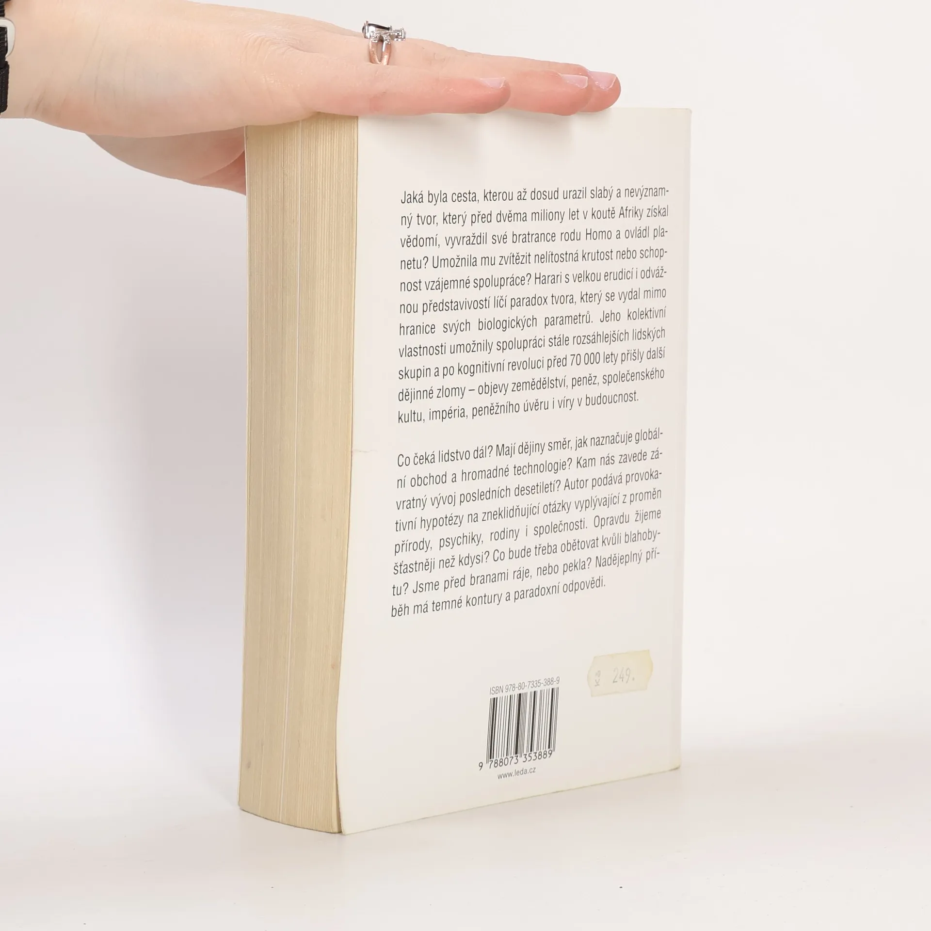Jaká byla cesta, kterou až dosud urazil slabý a nevýznamný tvor, který před dvěma miliony let v koutě Afriky získal vědomí, vyvraždil své bratrance rodu Homo a ovládl planetu? Umožnila mu zvítězit nelítostná krutost nebo schopnost vzájemné spolupráce? Harari s velkou erudicí i odvážnou představivostí líčí paradox tvora, který se vydal mimo hranice svých biologických parametrů. Jeho kolektivní vlastnosti umožnily spolupráci stále rozsáhlejších lidských skupin a po kognitivní revoluci před 70 000 lety přišly další dějinné zlomy – objevy zemědělství, peněz, společenského kultu, impéria, peněžního úvěru i víry v budoucnost. Co čeká lidstvo dál? Mají dějiny směr, jak naznačuje globální obchod a hromadné technologie? Kam nás zavede závratný vývoj posledních desetiletí? Autor podává provokativní hypotézy na zneklidňující otázky vyplývající z proměn přírody, psychiky, rodiny i společnosti. Opravdu žijeme šťastněji než kdysi? Co bude třeba obětovat kvůli blahobytu? Jsme před branami ráje, nebo pekla? Nadějeplný příběh má temné kontury a paradoxní odpovědi.