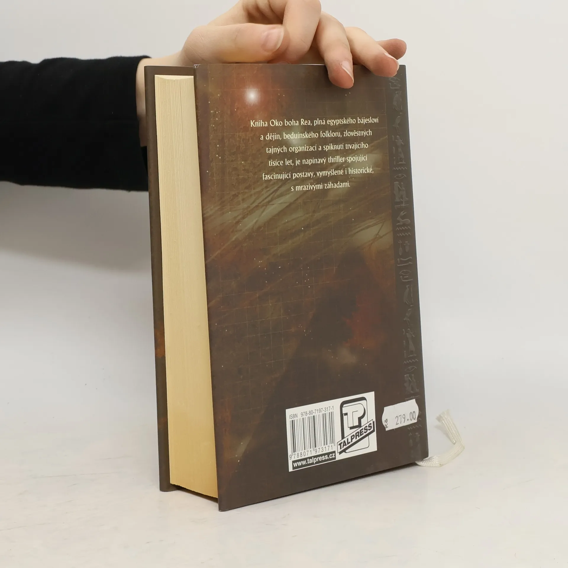 Aniž by to širší veřejnost tušila, otevřením Tutanchamonovy hrobky v roce 1923 bylo odhaleno důležité tajemství, které během let přivodí záhadnou smrt více než dvaceti lidí. Tady ale příběh nekončí. Omar James Ross, samotářský egyptolog, se vrací do Káhiry po zmizení svého přítele a kolegy Juliana Cranwella. Kniha Oko boha Rea, plná egyptského bájesloví a dějin, beduínského folklóru, zlověstných tajných organizací a spiknutí trvajícího tisíce let, je napínavý thriller spojující okouzlující postavy s mrazivými záhadami.