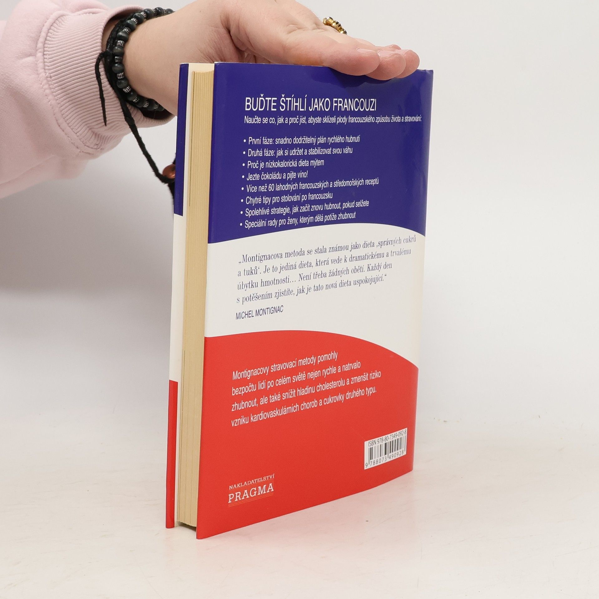 V knize Francouzská dieta Montignac podrobně vysvětluje, v čem se jeho metoda liší od všech ostatních diet, které jste již vyzkoušeli. Nabízí návrhy menu, přehledné tabulky GI různých potravin, chytré tipy pro stolování po francouzsku a více než šedesát lahodných receptů. Montignacova metoda se stala známou jako dieta "správných cukrů a tuků". Je to jediná dieta, které vede k dramatickému a trvalému úbytku hmotnosti. Není třeba žádných obětí. Každý den s potěšením zjistíte, jak je tato nová dieta uspokojující. Montignacovy stravovací metody pomohly bezpočtu lidí po celém světě nejen rychle a natrvalo zhubnout, ale také snížit hladinu cholesterolu a zmenšit riziko vzniku kardiovaskulárních chorob a cukrovky druhého typu.