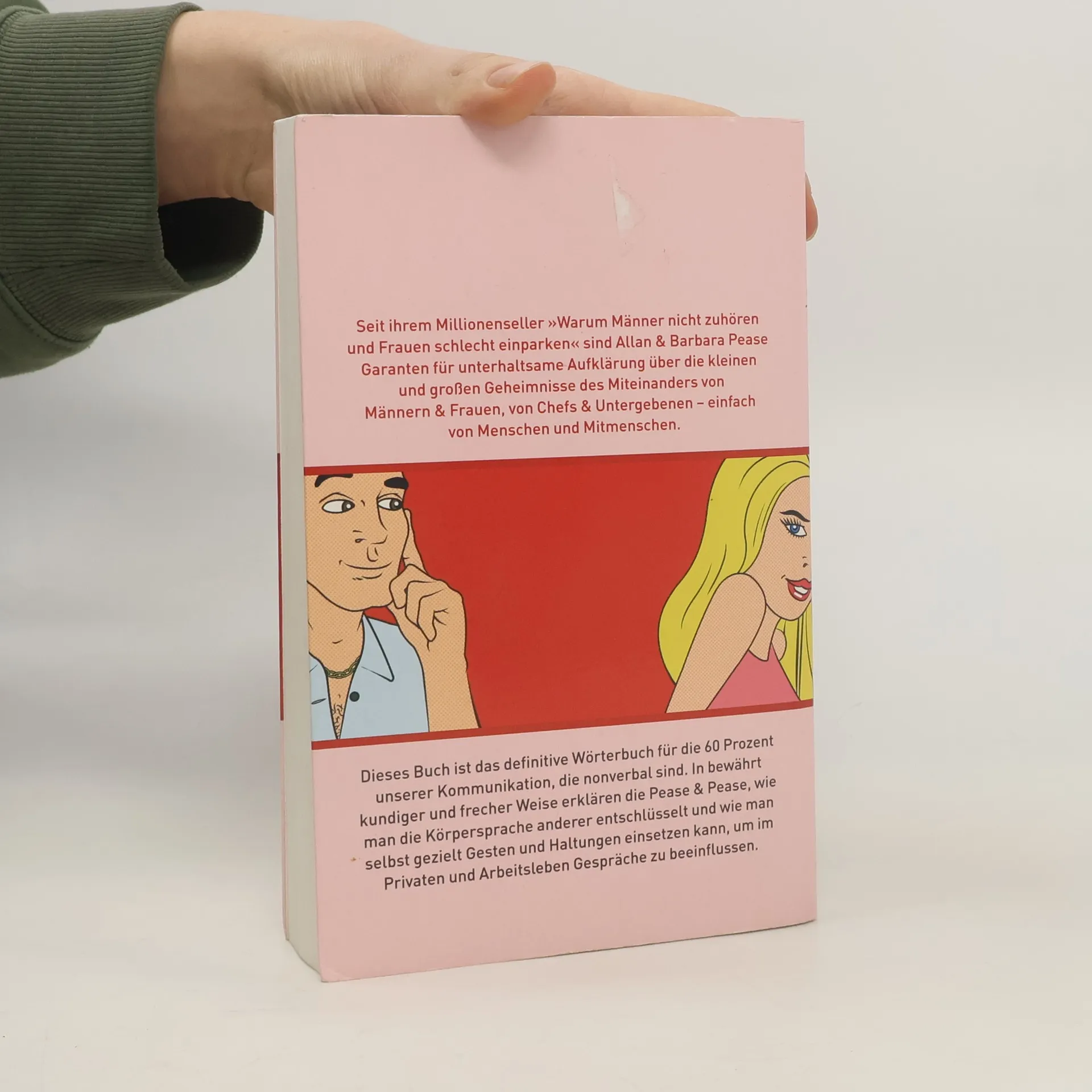 Dieses Buch zeigt Ihnen, was Ihnen bisher entgangen ist – und das ist eine Menge. Auf knapp 370 Seiten wird Körpersprache von Kopf bis Fuß behandelt, einschließlich nonverbaler Kommunikation durch Signale, Gestik und Mimik. Die Präsentation ist entlarvend und amüsant, angereichert mit zahlreichen Beispielen und Beobachtungen. Nach dem Erfolg von „Warum Männer nicht zuhören und Frauen schlecht einparken“ beweisen die beiden Kommunikationstrainer erneut, dass sie humorvoll und sachlich fundiert aufzeigen können, wie Körpersprache funktioniert. Ihre Erkenntnisse basieren auf intensiven Beobachtungen sowie aktuellen Forschungen aus Evolutions-, Gehirn- und Verhaltenswissenschaften. Unbewusste Gesten und Bewegungen offenbaren oft mehr über uns, als wir denken. Körpersprache verdeutlicht Wesenszüge, Absichten und innere Empfindungen und ist älter als gesprochene Sprache. Die kurzen Kapitel behandeln Themen wie die „Magie des Lächelns“, die „Macht der Hände“ und „Augensignale“. Sie sind leicht verständlich und durch Alltagsbeispiele sowie Illustrationen aus der Promiwelt ansprechend gestaltet. Ein abschließender Test ermutigt dazu, das Gelernte anzuwenden. Auch die Unterschiede zwischen Männern und Frauen werden humorvoll thematisiert, wobei Männer oft weniger Gesichtsausdrücke beherrschen. Diese Lektüre könnte helfen!