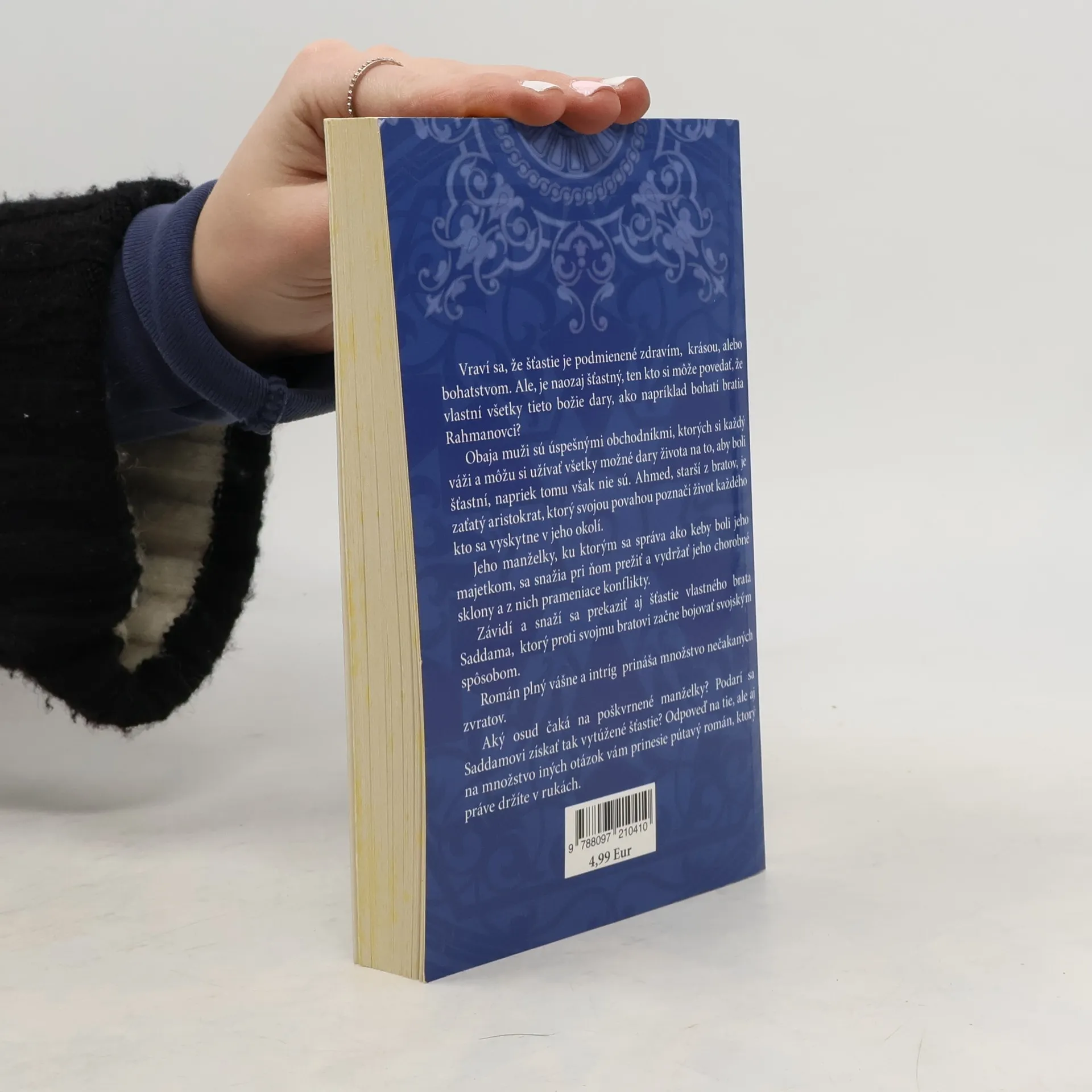 Vraví sa, že šťastie je podmienené zdravím, krásou, alebo bohatstvom. Ale, je naozaj šťastný, ten kto si môže povedať, že vlastní všetky tieto božie dary, ako napríklad bohatí bratia Rahmanovci? Obaja muži sú úspešnými obchodníkmi, ktorých si každý váži a môžu si užívať všetky možné dary života na to, aby boli šťastní, napriek tomu však nie sú. Ahmed, starší z bratov, je zaťatý aristokrat, ktorý svojou povahou poznačí život každého kto sa vyskytne v jeho okolí. Jeho manželky, ku ktorým sa správa ako keby boli jeho majetkom, sa snažia pri ňom prežiť a vydržať jeho chorobné sklony a z nich prameniace konflikty. Závidí a snaží sa prekaziť aj šťastie vlastného brata Saddama, ktorý proti svojmu bratovi začne bojovať svojským spôsobom. Román plný vášne a intríg prináša množstvo nečakaných zvratov. Aký osud čaká na poškvrnené manželky? Podarí sa Saddamovi získať tak vytúžené šťastie? Odpoveď na tie, ale aj na množstvo iných otázok vám prinesie pútavý román, ktorý práve držíte v rukách.
