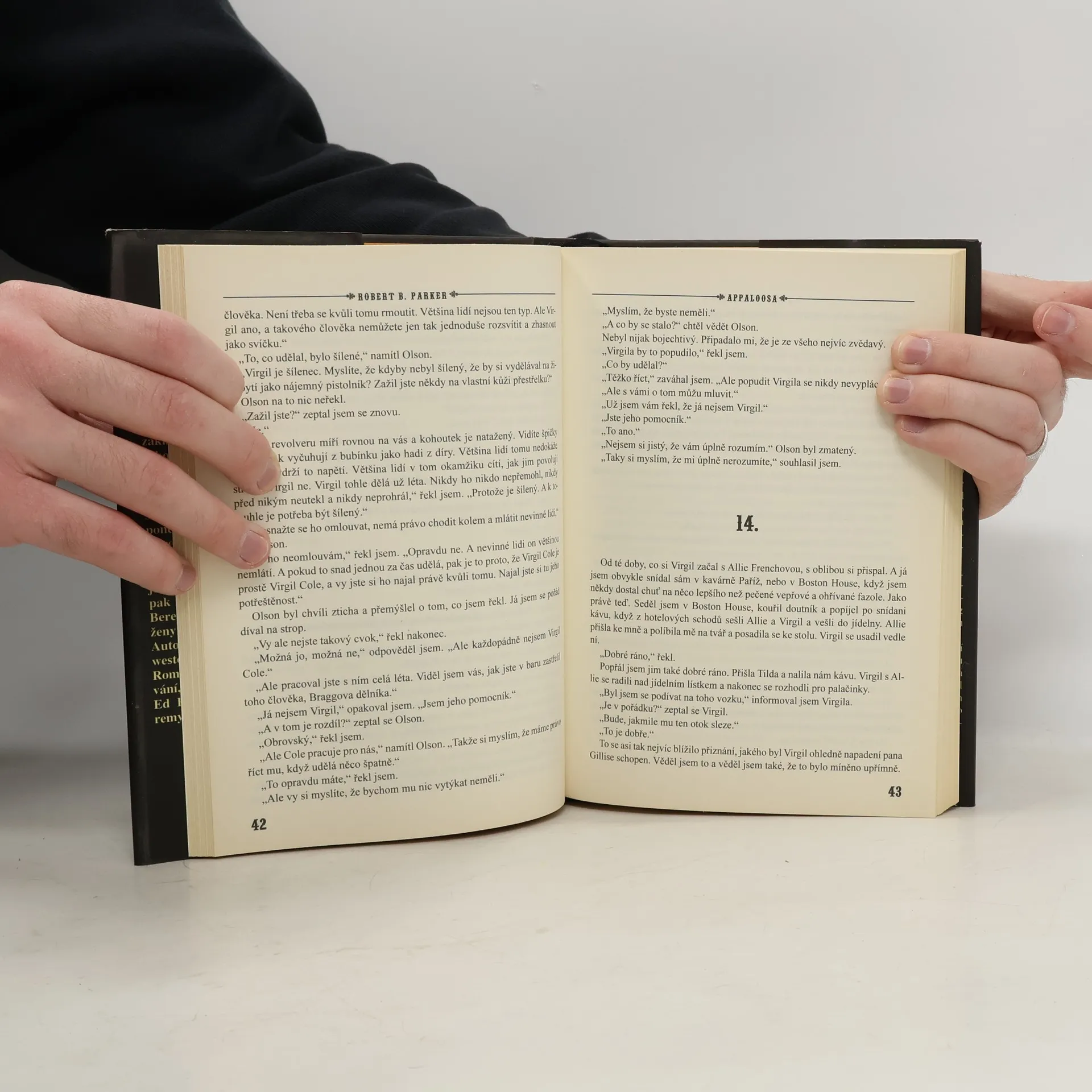 Appaloosa je Parkerův vynikající románový návrat na Divoký Západ, příběh vášně a drsné spravedlnosti na pozadí roku 1800, v místě, kde se zákony často vytvářejí přímo na základě okamžité situace a kde je zákon vymáhán muži, kteří - až na občasné výjimky - nejsou nic jiného než námezdní zabijáci. Rada starších městečka Appaloosa se rozhodne najmout si služby dvou poněkud pochybných mužů zákona Vergila Cola a Everesta Hotche, protože celé město je terorizováno zločinným rančerem Braggem, jehož muži zabijí šerifa a Bragg si tak v městečku počíná dle libosti. Bere si, co ho napadne whisky, ženy…. Autor čtenářům předkládá klasický western, který vtáhne čtenáře do děje. Román se dočkal filmového zpracování, ve kterém hlavní role ztvárnili Ed Harris, Viggo Mortensen, Jeremy Irons a Renée Zellwegerová.
