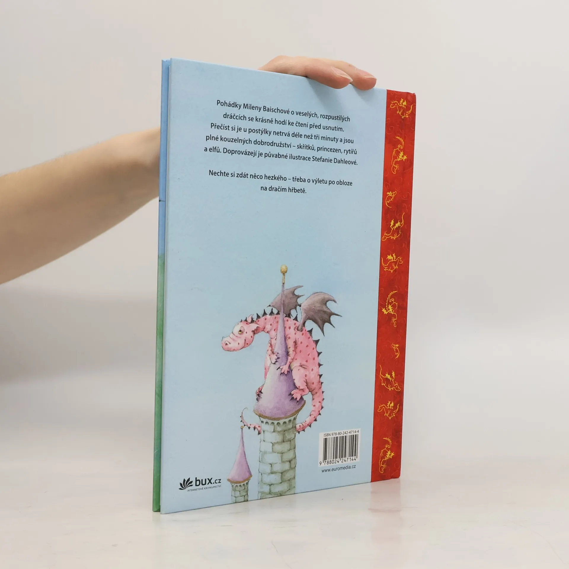 Krátké, tříminutové pohádky Mileny Baischové jsou ideální pro čtení před usnutím. Vyprávějí o veselých a drzích dráčcích, kteří přilétají do našeho světa a zažívají v něm kouzelná dobrodružství se skřítky, princeznami, rytíři a elfy. Doplňují je půvabné ilustrace Stefanie Dahleové. Kdopak by nechtěl s takovým dráčkem odletět do sna?