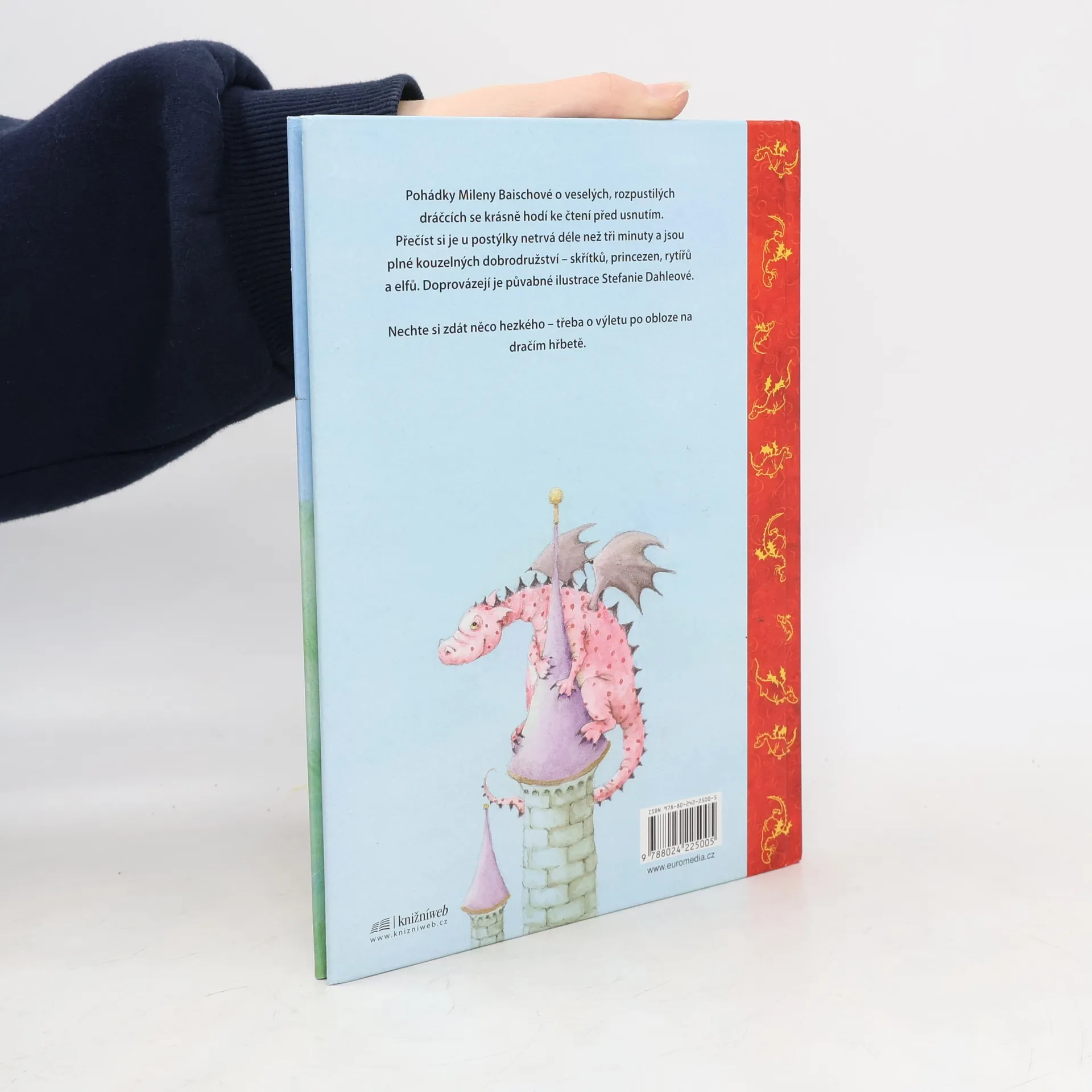 Pohádky Mileny Baischové o veselých, rozpustilých dráčcích se krásně hodí ke čtení před usnutím. Přečíst si je u postýlky netrvá déle než tři minuty a jsou plné kouzelných dobrodružství - skřítků, princezen, rytířů a elfů. Doprovázejí je půvabné ilustrace Stefanie Dahleové. Nechte si zdát něco hezkého - třeba o výletu po obloze na dračím hřbetě.