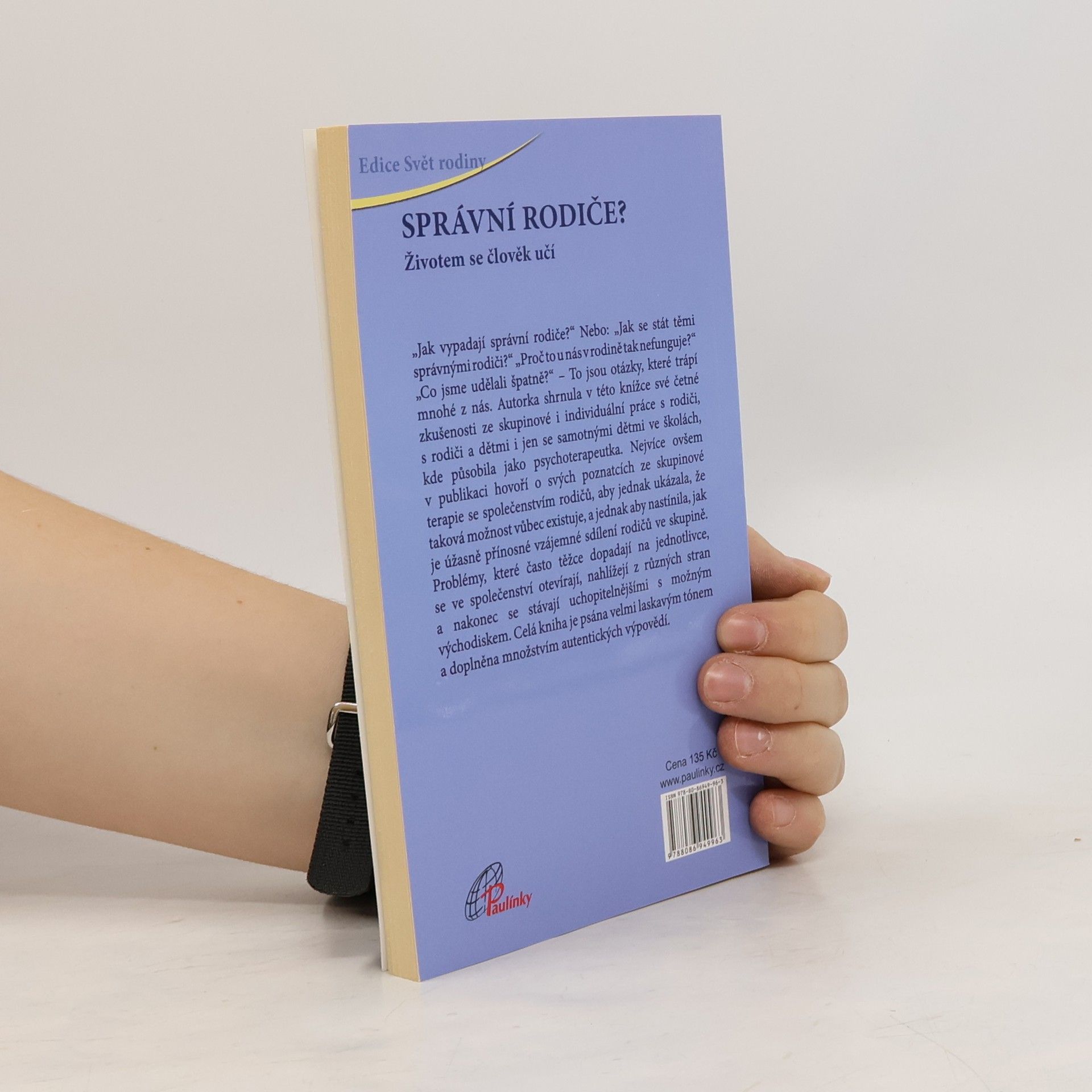 „Jak vypadají správní rodiče?“ Nebo: „Jak se stát těmi správnými rodiči?“ „Proč to u nás v rodině tak nefunguje?“ „Co jsme udělali špatně?“ – To jsou otázky, které trápí mnohé z nás. Autorka shrnula v této knížce své četné zkušenosti ze skupinové i individuální práce s rodiči, s rodiči a dětmi i jen se samotnými dětmi ve školách, kde působila jako psychoterapeutka. Nejvíce ovšem v publikaci hovoří o svých poznatcích ze skupinové terapie se společenstvím rodičů, aby jednak ukázala, že taková možnost vůbec existuje, a jednak aby nastínila, jak je úžasně přínosné vzájemné sdílení rodičů ve skupině. Problémy, které často těžce dopadají na jednotlivce, se ve společenství otevírají, nahlížejí z různých stran a nakonec se stávají uchopitelnějšími s možným východiskem. Celá kniha je psána velmi laskavým tónem a doplněna množstvím autentických výpovědí.