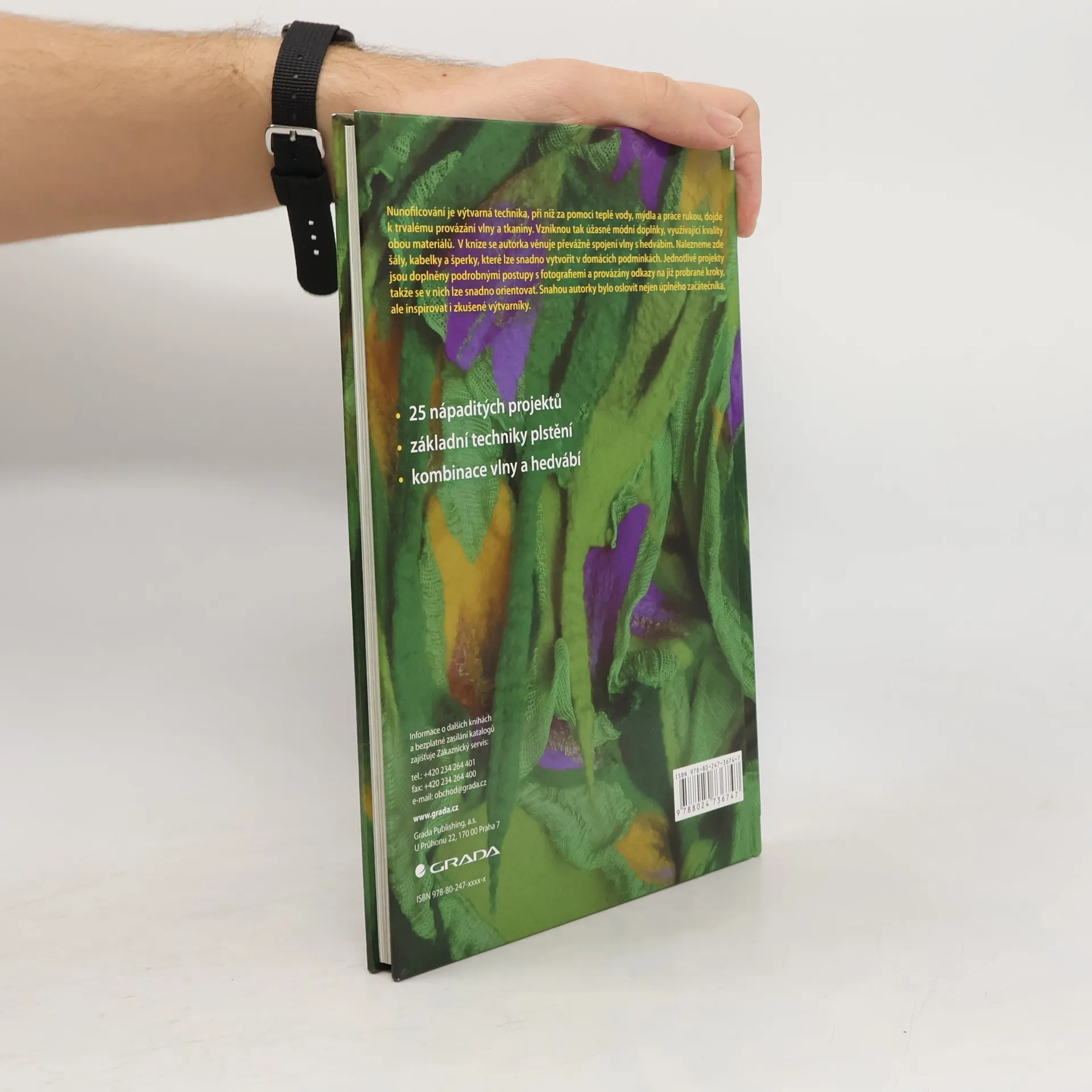 Nunofilcování je výtvarná technika, při níž za pomoci teplé vody, mýdla a práce rukou, dojde k trvalému provázání vlny a tkaniny. Vzniknou tak úžasné módní doplňky, využívající kvality obou materiálů. V knize se autorka věnuje převážně spojení vlny s hedvábím. Nalezneme zde šály, kabelky a šperky, které lze snadno vytvořit v domácích podmínkách. Jednotlivé projekty jsou doplněny podrobnými postupy s fotografiemi a provázány odkazy na již probrané kroky, takže se v nich lze snadno orientovat. Snahou autorky bylo oslovit nejen úplného začátečníka, ale inspirovat i zkušené výtvarníky.
