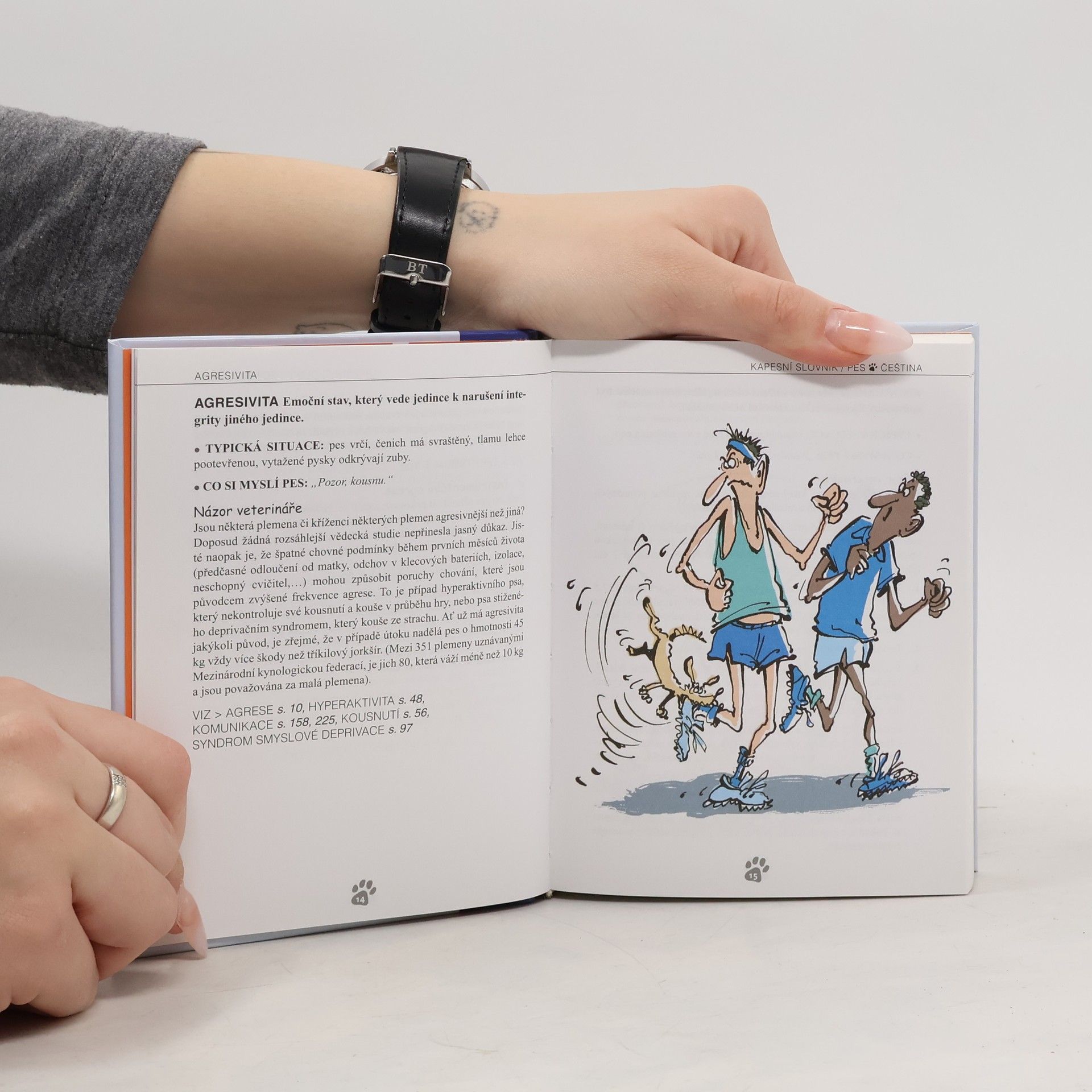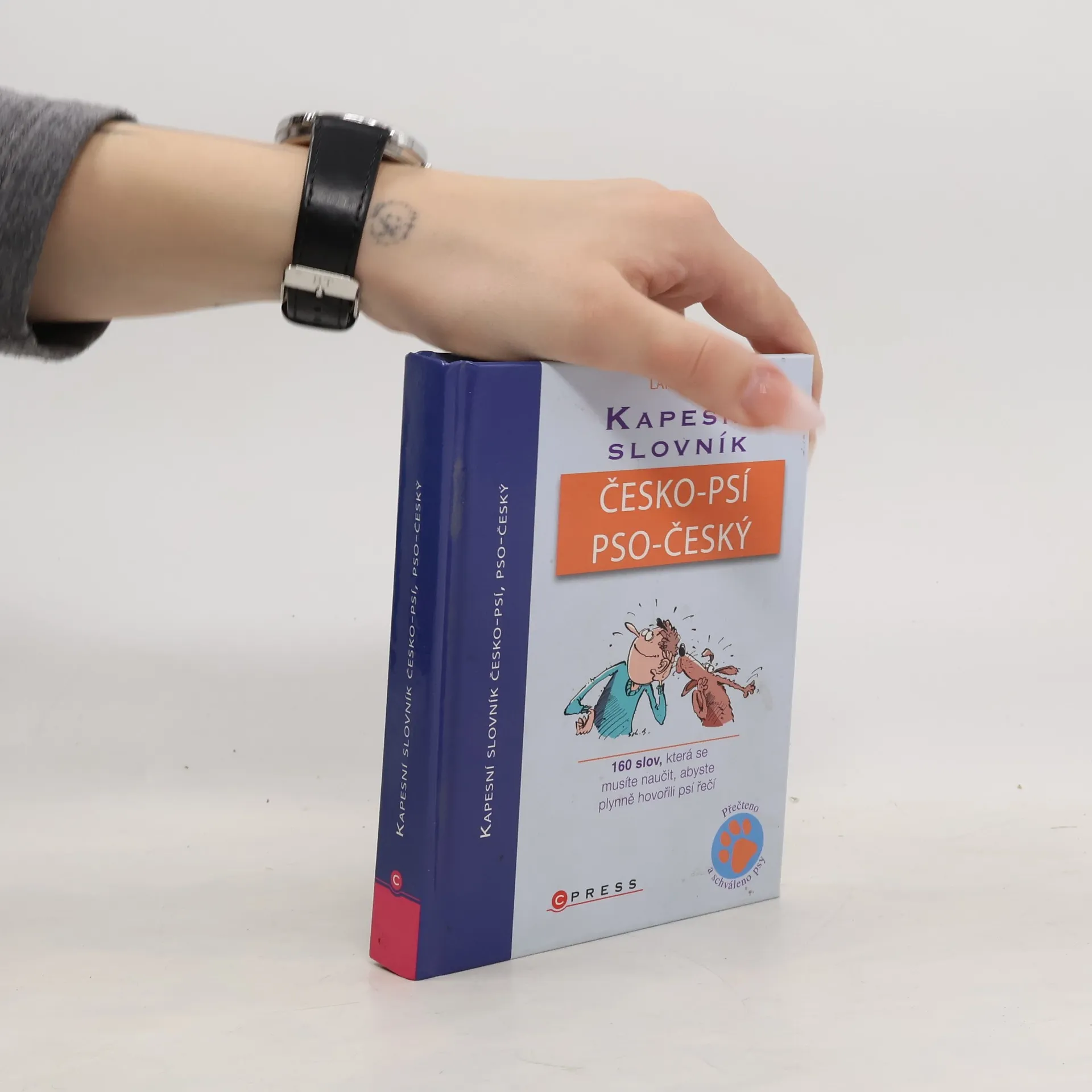 První oboustranný kapesní slovník, který hovoří jak psí řečí, tak i slovy jejich pánů. Nepostradatelný průvodce komunikací mezi člověkem a jeho psem (či psem a jeho člověkem) převádí chování a každodenní situace těchto dvou živočišných druhů do lidské a psí řeči pomocí 160 klíčových slov seřazených od A do Z: např.: agrese, blecha, čich, deprese, falešná březost, hierarchie, kastrace ale také automobil, hra, kočka, nečistotnost, obskakování, poštovní doručovatel, sexualita, trest... Něžný, ale občas i konfliktní vztah mezi člověkem a psem doprovází více než 100 humorných kreseb.... celý text