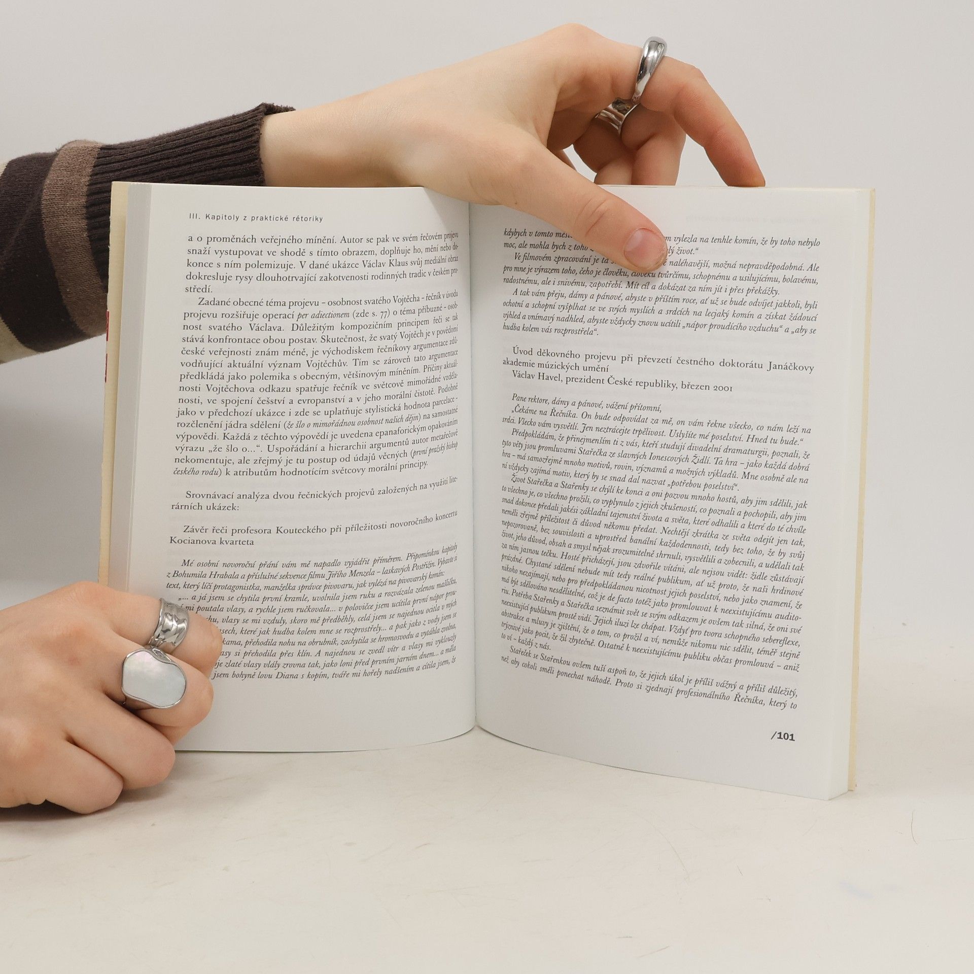 Přehledný průvodce dějinami a současností rétoriky. Čtivý výklad je zaměřen na praktické znalosti a přináší užitečný přehled tematických okruhů, které se vztahují k stylistické stránce jednotlivých žánrů řečnického vystoupení. Autor se opírá o znalost jak tisíciletého vývoje oboru, tak moderních, na rétorice založených interpretativních metod. Prostřednictvím vybraných příkladů ze současného českého mediálního diskurzu kniha vhodně spojuje obě tendence rétoriky: teoretickou, úvahovou a praktickou, návodnou. Ocení laičtí i odborní zájemci o český jazyk, kulturu vyjadřování či jazykovědnou a literární teorii.