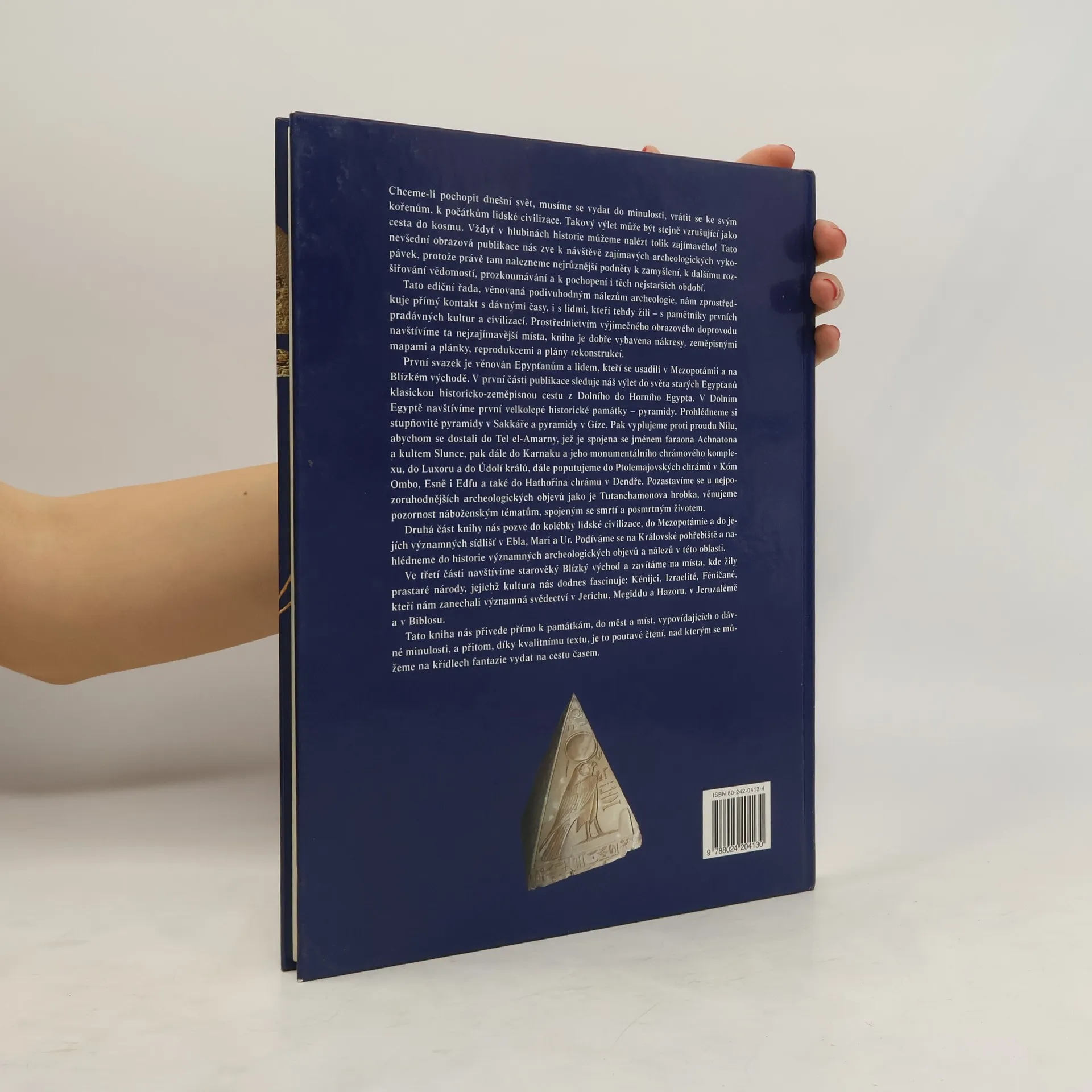 Výpravná obrazová publikace přibližuje významné archeologické památky nejstarších lidských civilizací Egypta, Mezopotámie a Blízkého východu. Publikaci prostřednictvím velmi pěkných barevných fotografií archeologických nálezů, různých kreseb, nákresů i plánků vypovídá o dávné minulosti lidstva. Dozvíme se mnoho zajímavého z historie významných archeologických objevů i o osobnostech kousek po kousku odkrývajících jedinečné památky starověkých civilizací. První, podstatná část knihy je věnovaná památkám Dolního a Horního Egypta - pyramidy, Údolí králů, Tutanchamonova hrobka atd. V další části budeme sledovat archeologické objevy a nálezy v Mezopotámii - Sumerové, Asyřané, Ninive, Babylonie a v oblastech starověkého Blízkého východu - Kananejci, Foiničané, Kumránské svitky atd.