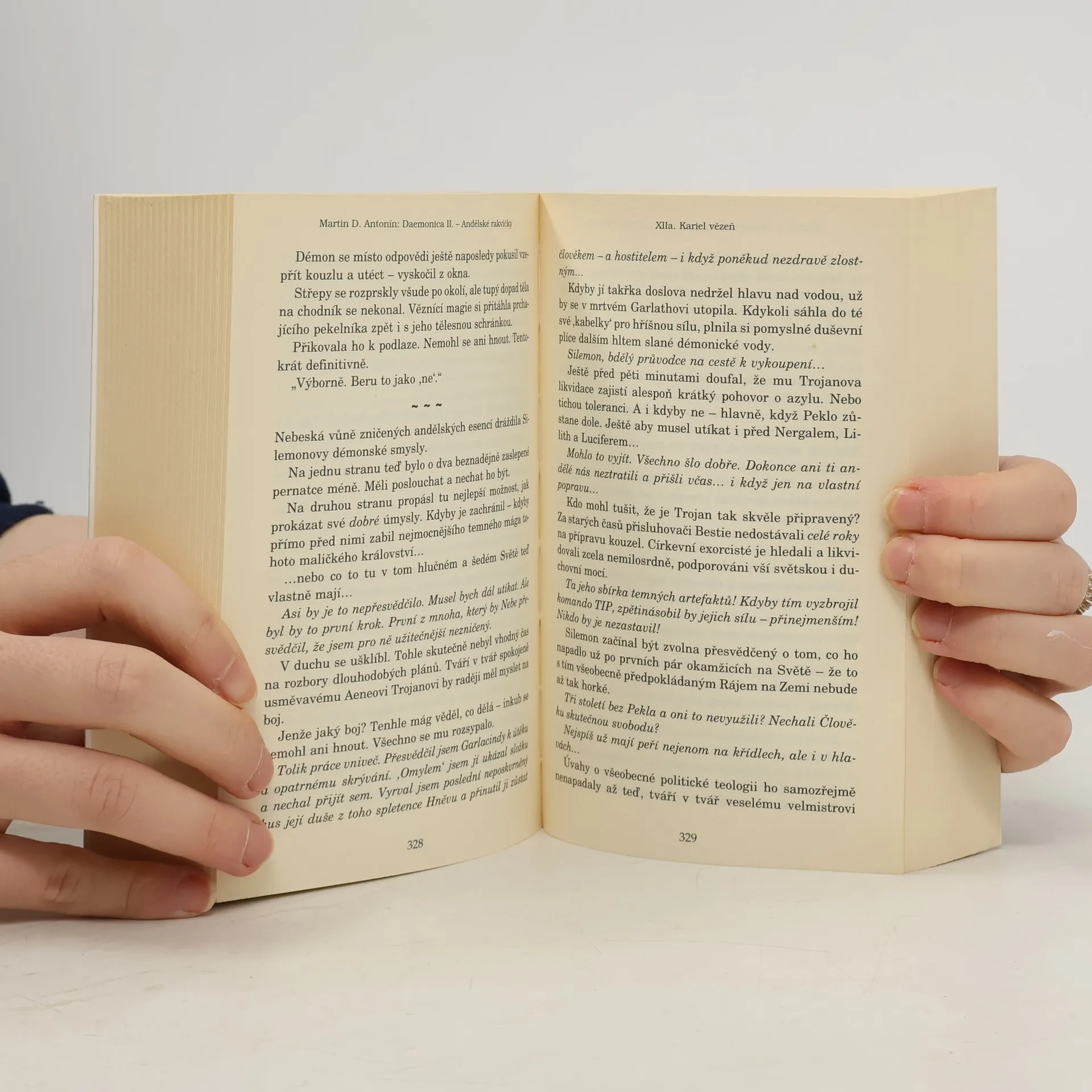 V druhém díle Daemonicy pokročíte ve svém vzdělání na nové, netušené mety, protože zjistíte, za co dostanete dva démony zdarma, zda se operace Svatý Rohatec definitivně vymkla kontrole, koho pasou pražští bačové, kolik zatáček má Přímočarý plán, jestli je vítězství ve volbách do shromáždění světových Rájů důležitější než spasení lidské duše, kteří démoni rádi plavou ve svěcené vodě, jestli smí andělé nutit lidi konat zlo, který český mág nosí nejpohodlnější papučky a jakou barvu špendlíku má konec světa. Není divu, že se po Pekelném nářezu v prvním díle dostávají do kurzu Andělské rakvičky, ale brzy ochutnáte i Českou sekanou - a nesmíte mít autorovi za zlé, pokud se nechá strhnout megalomanským kulinářským nadšením a zakončí celou hostinu Všesvětovým gulášem. Přesto se nic nemění: Toto není kuchařka. Věřte nám. Vařit podle této knihy by bylo opravdu nemoudré. Arnošt Hovězí se distancuje od veškerých zažívacích potíží, které by Vám ignorováním této rady vyvstaly, a jedním si buďte skutečně jistí: On už o žaludku ví všechno.