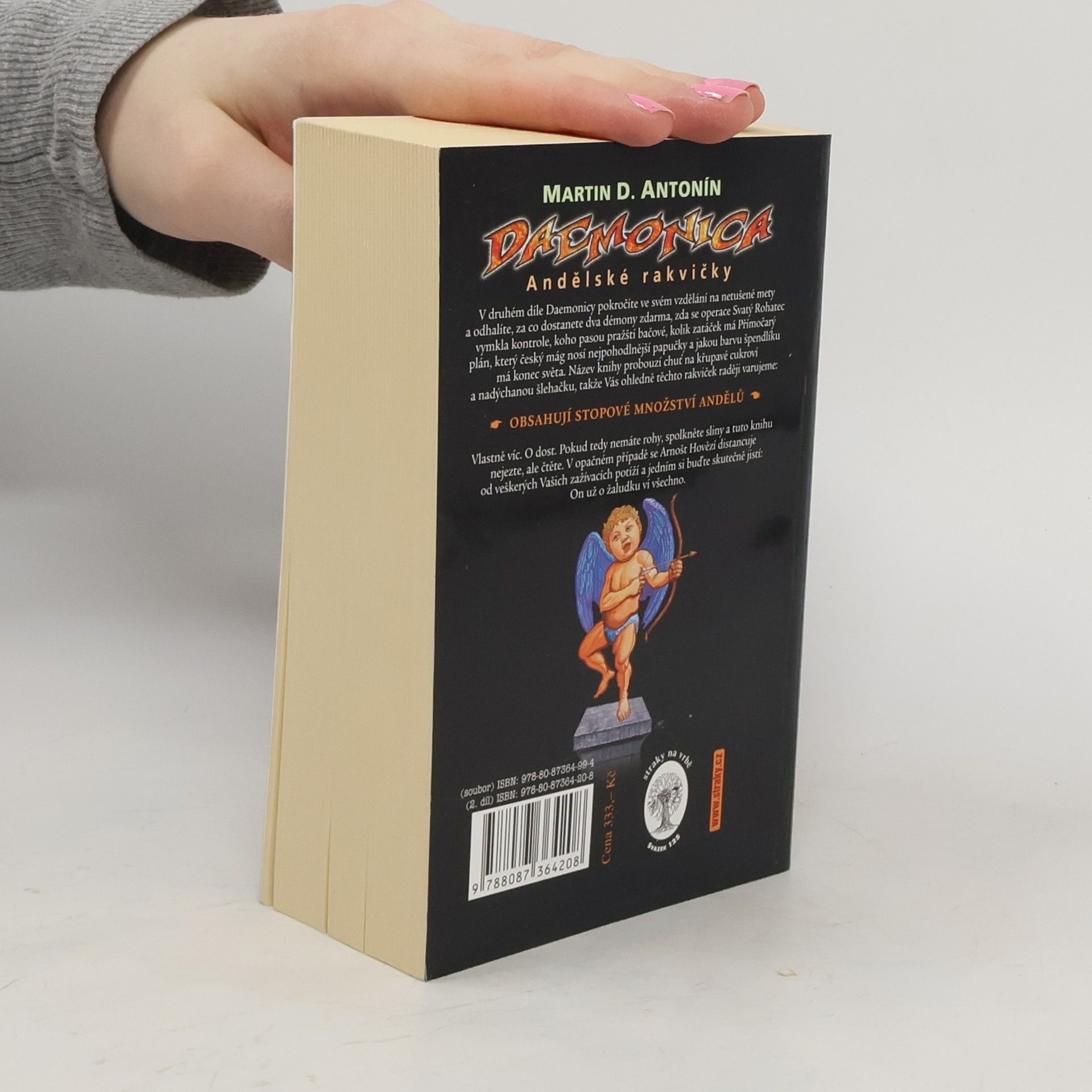 V druhém díle Daemonicy pokročíte ve svém vzdělání na nové, netušené mety, protože zjistíte, za co dostanete dva démony zdarma, zda se operace Svatý Rohatec definitivně vymkla kontrole, koho pasou pražští bačové, kolik zatáček má Přímočarý plán, jestli je vítězství ve volbách do shromáždění světových Rájů důležitější než spasení lidské duše, kteří démoni rádi plavou ve svěcené vodě, jestli smí andělé nutit lidi konat zlo, který český mág nosí nejpohodlnější papučky a jakou barvu špendlíku má konec světa. Není divu, že se po Pekelném nářezu v prvním díle dostávají do kurzu Andělské rakvičky, ale brzy ochutnáte i Českou sekanou - a nesmíte mít autorovi za zlé, pokud se nechá strhnout megalomanským kulinářským nadšením a zakončí celou hostinu Všesvětovým gulášem. Přesto se nic nemění: Toto není kuchařka. Věřte nám. Vařit podle této knihy by bylo opravdu nemoudré. Arnošt Hovězí se distancuje od veškerých zažívacích potíží, které by Vám ignorováním této rady vyvstaly, a jedním si buďte skutečně jistí: On už o žaludku ví všechno.