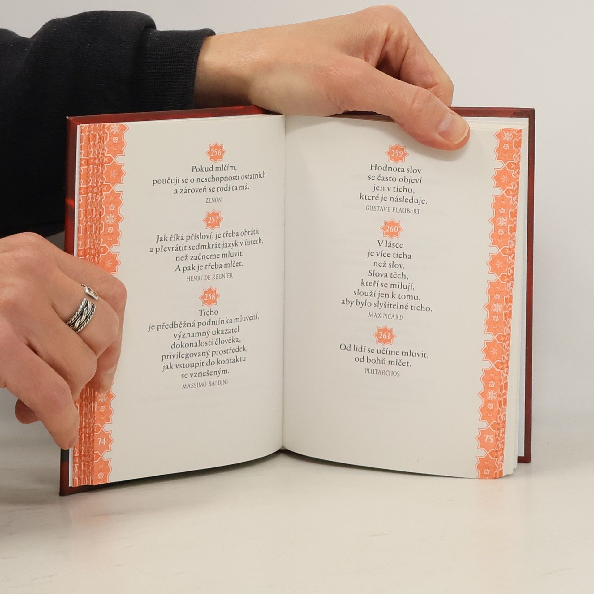 Knížka obsahuje citáty (moudré, humorné, satirické, podněcující k zamyšlení) známých osobností z různých období a různých zemí na téma ticho a mlčení. V dnešním světě je málo místa pro ticho, podstatnou podmínku, jak se naučit umění naslouchat. Mnoho lidí, vyčerpaných ohlušujícím povykem moderního života, blahodárné účinky „ticha, které léčí“, ocení. Podle švýcarského spisovatele M. Picarda „člověk, jenž ztratil ticho, nejenže ztratil svou podstatu, ale změnil se v celé své struktuře“. Myšlenky, které jsou shromážděny v tomto svazku, chtějí pomoci čtenáři umlčet hluk vnějšího světa, aby bylo možné udělat místo naslouchání vnitřnímu hlasu.