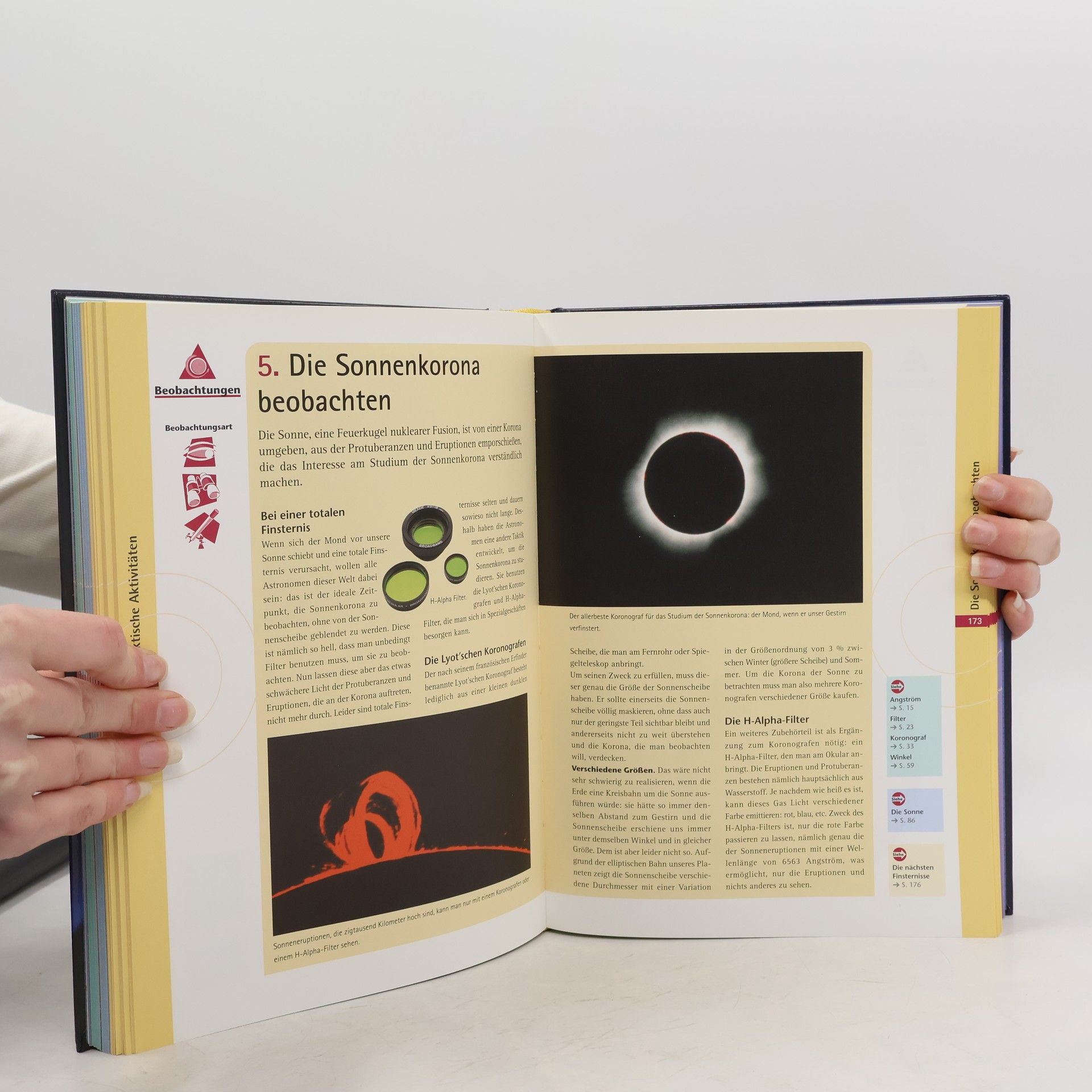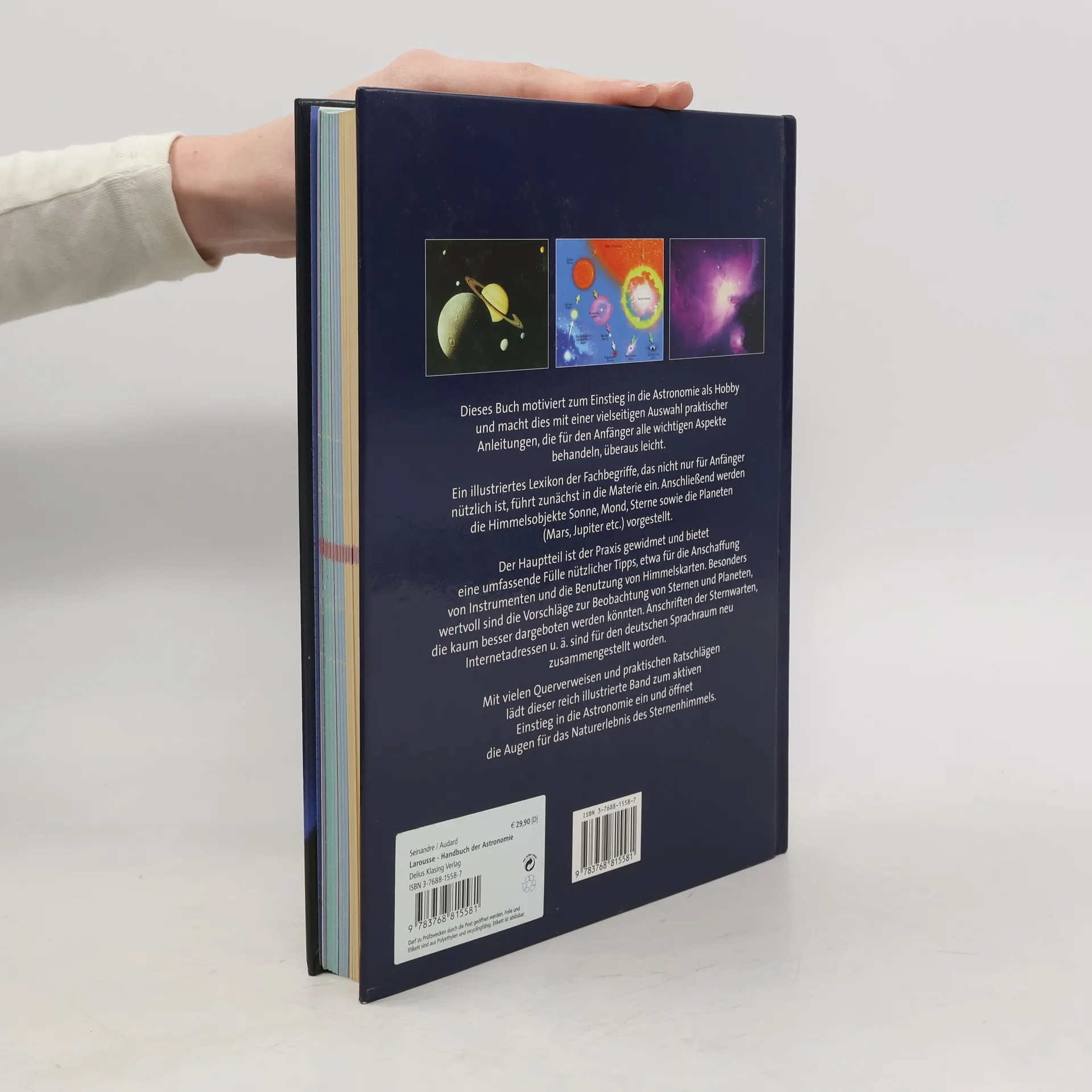 Dieser Titel motiviert zum Einstieg in die Astronomie als Hobby und macht dies mit einer vielseitigen Auswahl praktischer Anleitungen, die für den Anfänger alle wichtigen Aspekte behandeln, ganz leicht. Ein illustriertes Lexikon der Fachbegriffe, das sicher nicht nur für Anfänger nützlich ist, führt zunächst in die Materie ein. Anschließend werden die Himmelsobjekte Sonne, Mond, Sterne sowie die Planeten (Mars, Jupiter etc.) vorgestellt. Der große Hauptteil ist dann der Praxis gewidmet und bietet eine umfassende Fülle nützlicher Tipps, z. B. für die Anschaffung von Instrumenten und die Benutzung von Himmelskarten. Besonders wertvoll sind die Vorschläge zur Beobachtung von Sternen und Planeten, die kaum besser dargeboten werden könnten. Anschriften der Sternwarten, Internetadressen u. ä. sind für den deutschen Sprachraum neu zusammengestellt worden. Durchgängig lädt dieser reich illustrierte Titel mit vielen Querverweisen, Fragen an den Leser und praktischem Rat zum aktivem Einstieg in die Astronomie ein und öffnet die Augen für das Naturerlebnis des Sternenhimmels