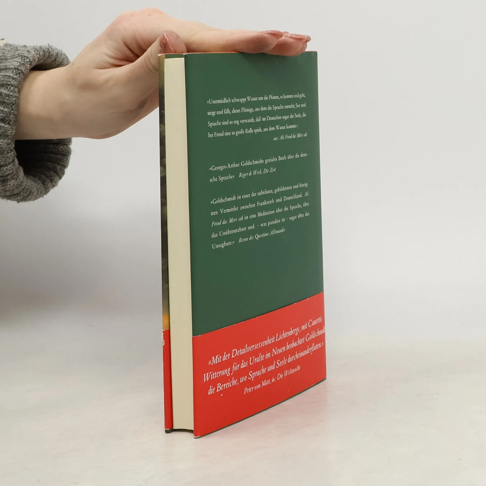 Ein wunderbares Buch über die Sprache, die wie der Blutkreislauf unsere Existenz durchzieht. Goldschmidt, der gebildetste und feurigste Vermittler zwischen Frankreich und Deutschland, schreibt auf erstaunliche Weise über das Leben in zwei Sprachen und das Übersetzen. Leidenschaftlich und spannend öffnet er die Bedeutungsräume zwischen den beiden Sprachen, in dem Wissen, dass sich hinter dem Gesagten ungeahnte Kostbarkeiten verbergen. »Ein verblüffendes Buch über die Sprache« Peter von Matt