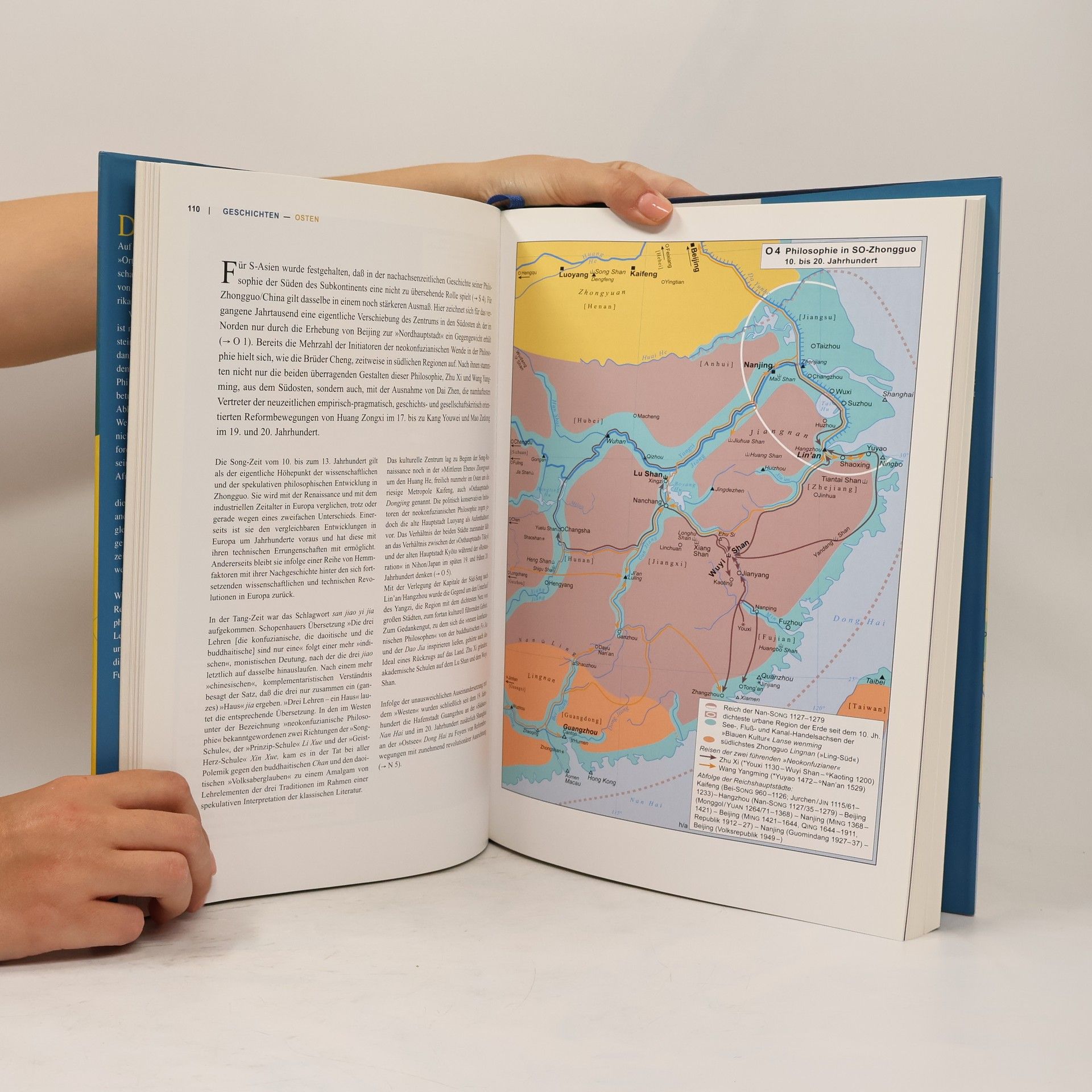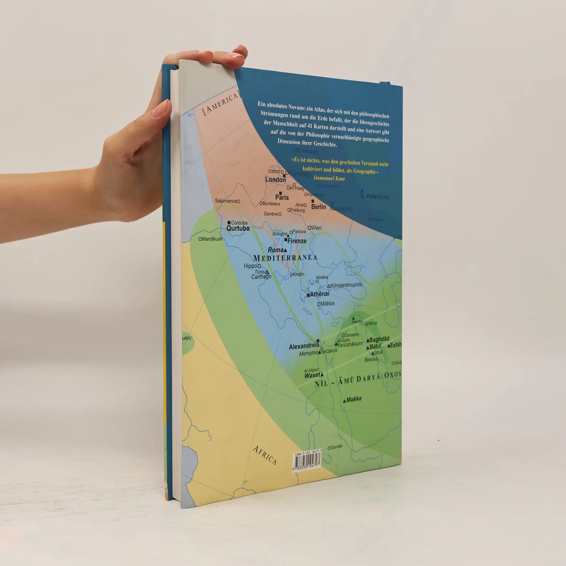 Ein absolutes Novum. Auf 41 Karten und Schaubildern zeichnet dieser Atlas die „Orte und Wege des Denkens“ nach und veranschaulicht die Ideengeschichte der Menschheit, von ihren Anfängen bis in die Gegenwart, von Afrika bis ins „Land der Mitte“ Zhongguo. Verständnis der Philosophie und ihrer Vertreter ist nur eines der zentralen Anliegen Elmar Holensteins. Das besondere Augenmerk liegt auf dem gedanklichen Austausch zwischen den Kulturen, auf dem Beziehungsgeflecht, das Erdteile verbindet. Philosophische Lehren lassen sich nicht isoliert betrachten, sie entwickeln und verändern sich in Abhängigkeit von ihrem Umfeld. So führte der Weg der sogenannten „europäischen Philosophie“ nicht direkt von Hellas über Roma nach Paris, Oxford oder Königsberg, sondern erhielt gerade auf seinen „Umwegen“ von Süd-west- Asien und Nord-Afrika ent-scheidende Impulse. Die Karten und ihre Begleittexte fordern auf, die Geschichte des Denkens einmal aus einem anderen Blickwinkel zu sehen. Erdteile werden gleichrangig behandelt, eurozentrische Namen ausgespart, Fremdbezeichnungen durch Eigenbezeichnungen ersetzt: So wird Vorderasien zu Südwest- Asien, Korea zu Han'guk.