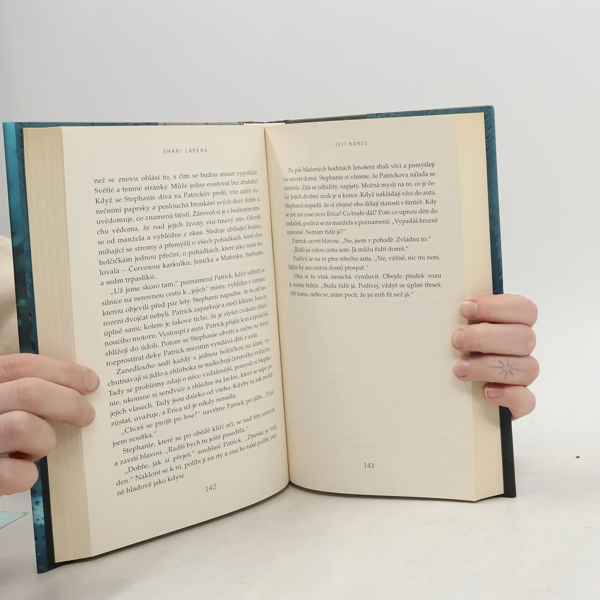 Kniha Její konec je bezva kniha, jako ostatně všechny knihy od Shari Lapeny, ale postrádala jsem v ní nějakou sympatickou postavu, někoho, komu bych mohla držet palce, což ovšem neznamená, že to ostatní čtenáři musí vidět stejně. Upřímně řečeno, nejraději bych všechny ty psychopatické, sebestředné, ufňukané sobce srovnala na jednu hromadu. Jinak ovšem kniha nepostrádá napětí, důmyslnou zápletku a nečekané rozuzlení. Shari Lapena prostě umí!