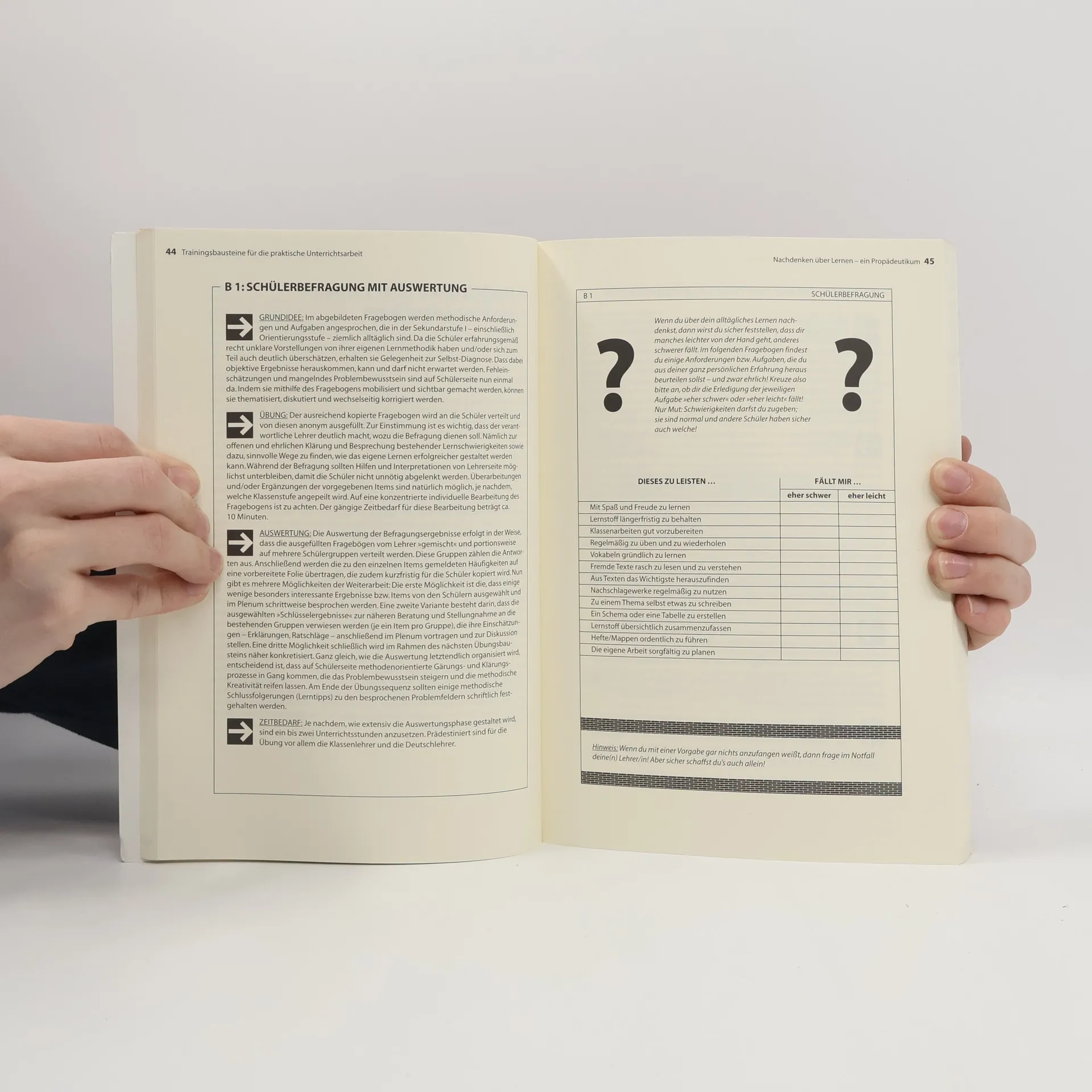 Schüler/-innen müssen Methoden haben - natürlich! Denn davon hängt sowohl ihr Lernerfolg als auch die Belastung des Lehrers ab. Deshalb ist ein verstärktes Methoden-Training dringend geboten! Sind Sie mit den methodischen Fähigkeiten Ihrer Schüler/innen unzufrieden? Dann trainieren Sie diese einfach in den verschiedenen Fächern der Sekundarstufe! Klippert hat in diesem Band 120 erprobte und bewährte Übungen dokumentiert: von der Informationsbeschaffung über deren Verarbeitung und Präsentation bis hin zur Arbeits- und Zeitplanung. Diese Fundgrube entlastet Sie beim Unterrichten: Die Lernenden werden unter Ihrer Anleitung selbst aktiv! Die klar dokumentierten, ansprechenden Materialien sind eine Fundgrube für alle, die ihre Unterrichtsweise verändern wollen. Dem Buch wäre, im Interesse der Schülerinnen und Schüler zu wünschen, dass es in den Seminar- und Lehrerbibliotheken möglichst oft eingesehen und seine Anregungen erprobt würden. VBE magazin