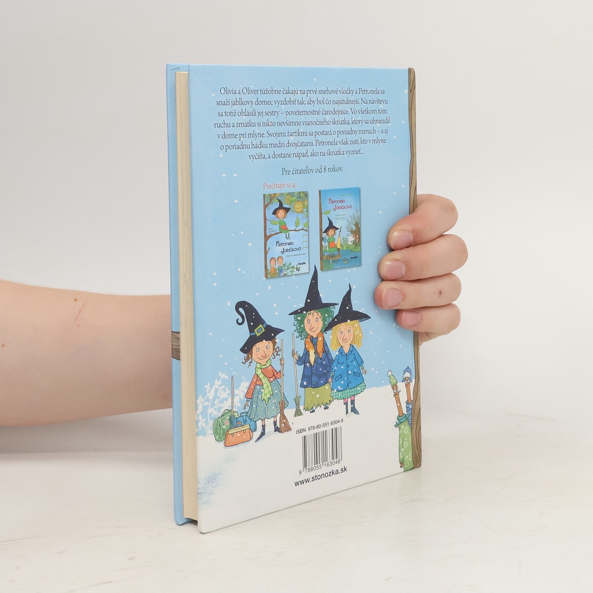 Olívia a Oliver túžobne čakajú na prvé snehové vločky a Petronela sa snaží jablkový domec vyzdobiť tak, aby bol čo najútulnejší. Na návštevu sa totiž ohlásili jej sestry – čarodejnice zodpovedné za počasie. Vo všetkom tom ruchu a zmätku si nikto nevšimne vianočného škriatka, ktorý sa uhniezdil v dome pri mlyne. Svojimi žartíkmi sa postará o poriadny rozruch – a aj o poriadnu hádku medzi dvojčatami. Petronela však zistí, kto v mlyne vyčíňa, a dostane nápad, ako na škriatka vyzrieť…