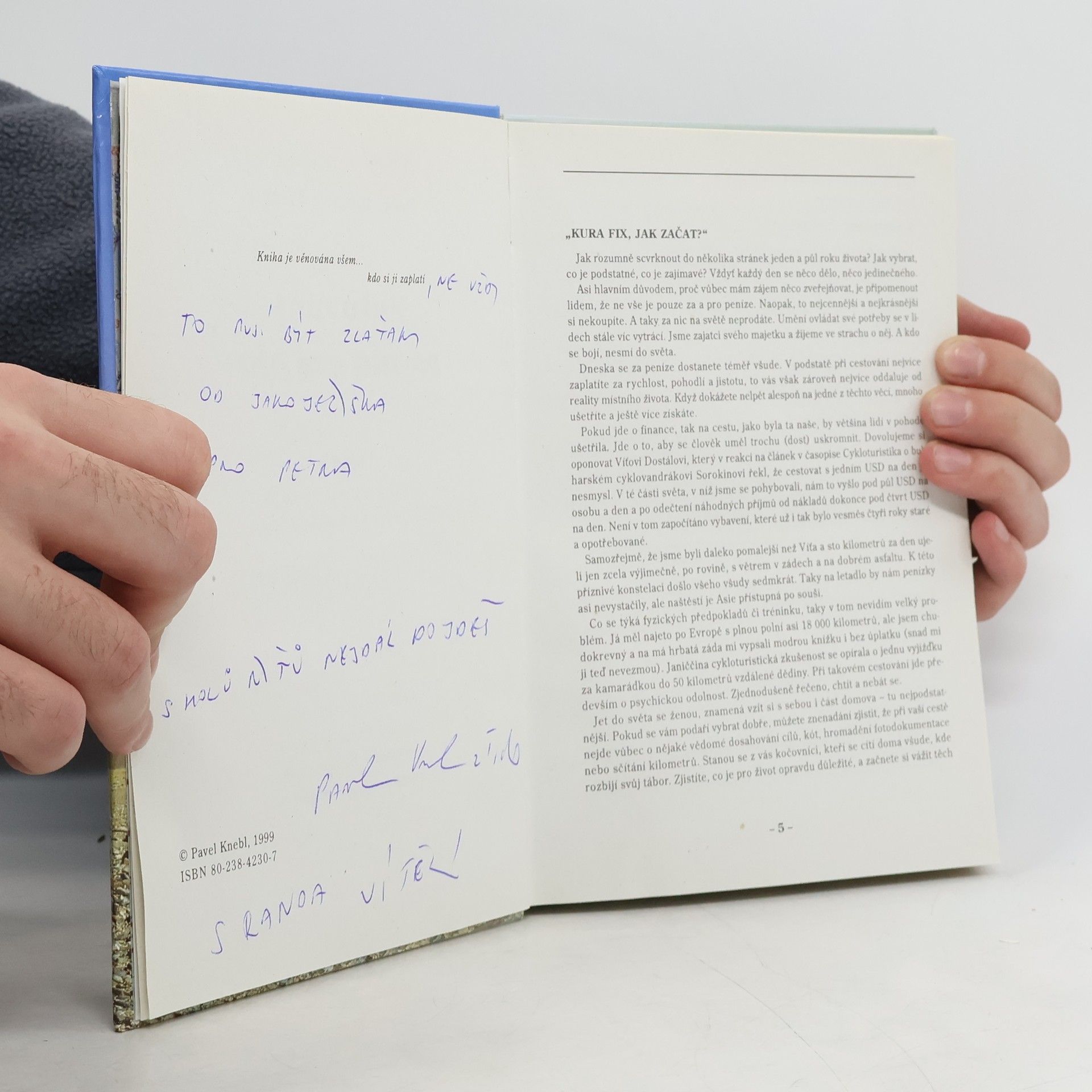 Putování pro nic za nic aneb na kole i v mačkách v pohodě i sračkách napsal: Pavel Knebl z Tiché Rok a půl kočování na východ a zpátky naturální příhodopis, pocitopis z cesty Jany a Pavla Kneblových - 21 000 km v sedlech kol, 5 600 km stopem, fůru km pěšky toulání po Karpatech, Kavkazu, Himaláji, Tibetu, Tian-šanu, Sibiři 5 600 m nad hladinou (Elbrus, Kailaš), na kole v 5 300 m n.m. 480 zapálených ohňů setkání s Leninem tisíckrát jinak výzkum pohostinnosti národů lekce primitivní ekologie náklady na cestě 250 USD na osobu.... celý text