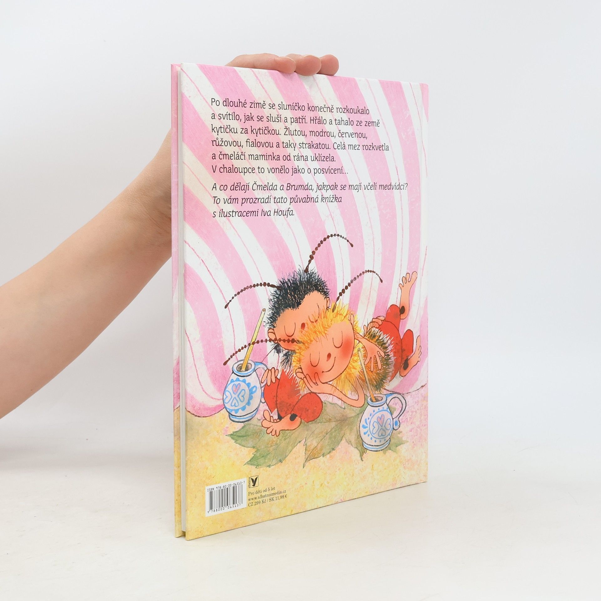 Jaro je tady! Copak dělají Čmelda a Brumda? Po dlouhé zimě se sluníčko konečně rozkoukalo a svítilo, jak se sluší a patří. Hřálo a tahalo ze země kytičku za kytičkou. Žlutou, modrou, červenou, růžovou, fialovou a taky strakatou. Celá mez rozkvetla a čmeláčí maminka od rána uklízela. V chaloupce to vonělo jako o posvícení... A co dělají Čmelda a Brumda, jakpak se mají? To vám prozradí třetí knížka o starých známých včelích medvídcích, která volně navazuje na dvě předchozí.