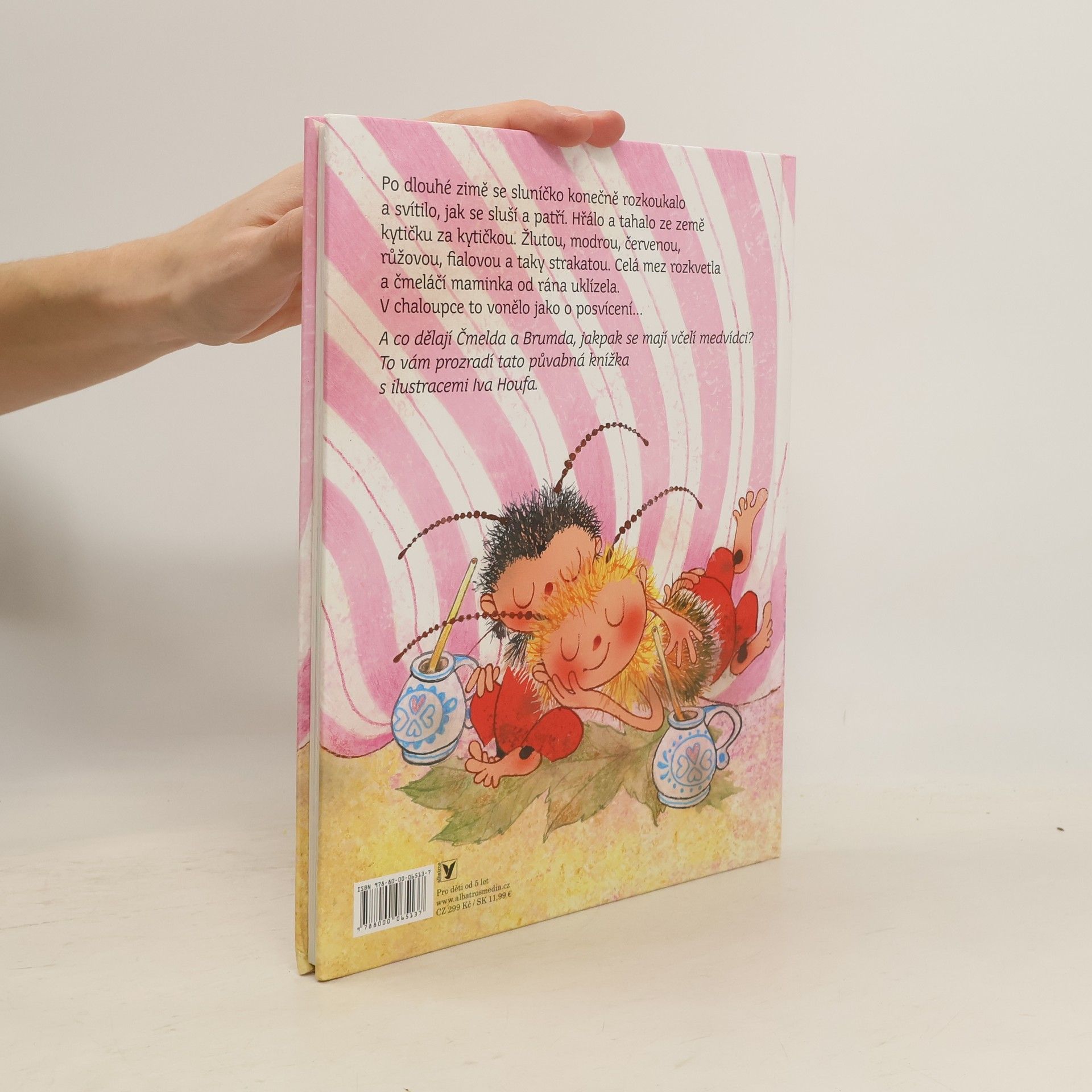 Jaro je tady! Copak dělají Čmelda a Brumda? Po dlouhé zimě se sluníčko konečně rozkoukalo a svítilo, jak se sluší a patří. Hřálo a tahalo ze země kytičku za kytičkou. Žlutou, modrou, červenou, růžovou, fialovou a taky strakatou. Celá mez rozkvetla a čmeláčí maminka od rána uklízela. V chaloupce to vonělo jako o posvícení... A co dělají Čmelda a Brumda, jakpak se mají? To vám prozradí třetí knížka o starých známých včelích medvídcích, která volně navazuje na dvě předchozí.