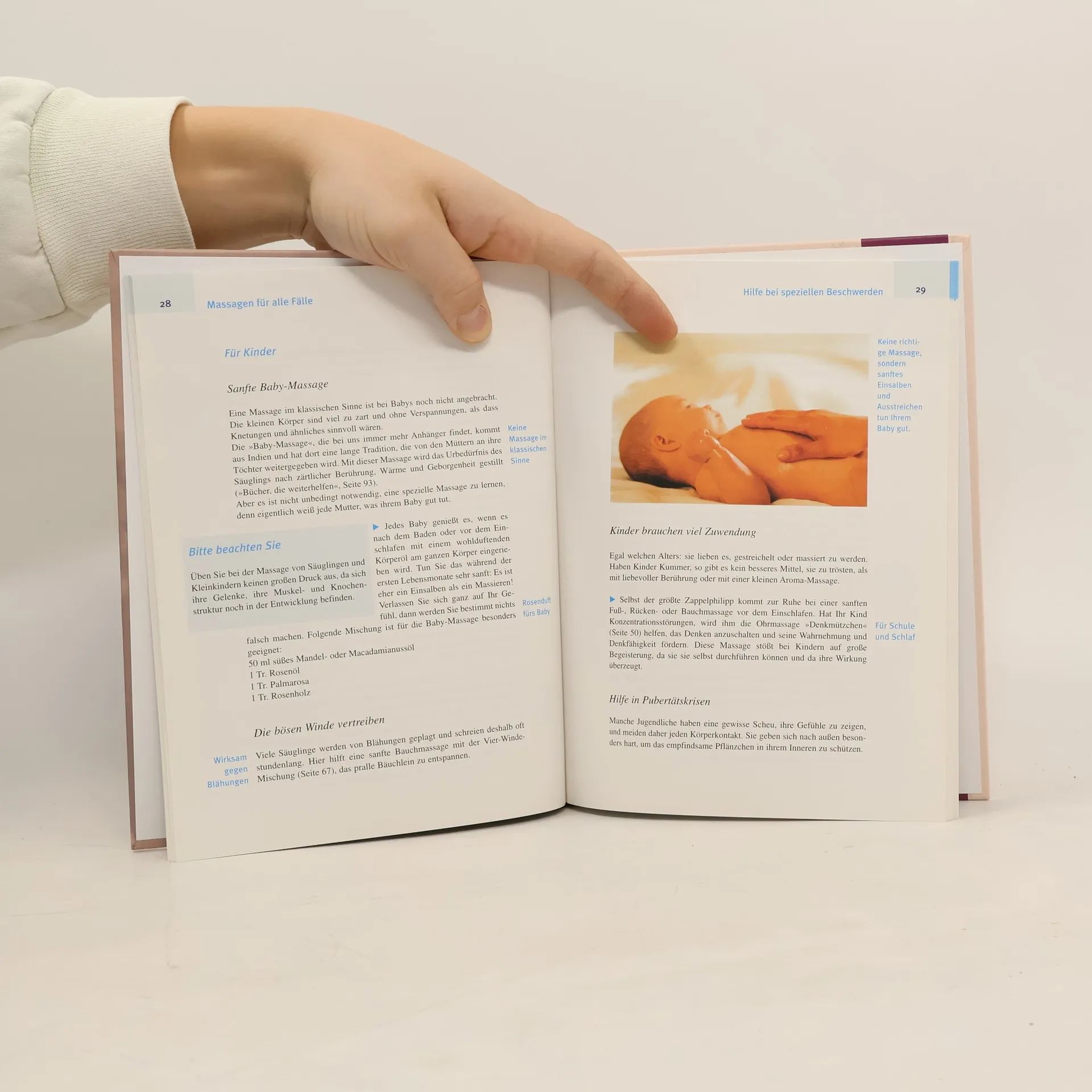 Sanfte Massagen mit ätherischen Ölen lindern Beschwerden, helfen gegen den täglichen Stress und sind sinnliche Erlebnisse der besonderen Art. Schritt für Schritt werden die richtigen Techniken für Selbst- und Partnermassagen gezeigt, und mit bewährten Rezepten lassen sich vielfältige Massageölmischungen zubereiten.