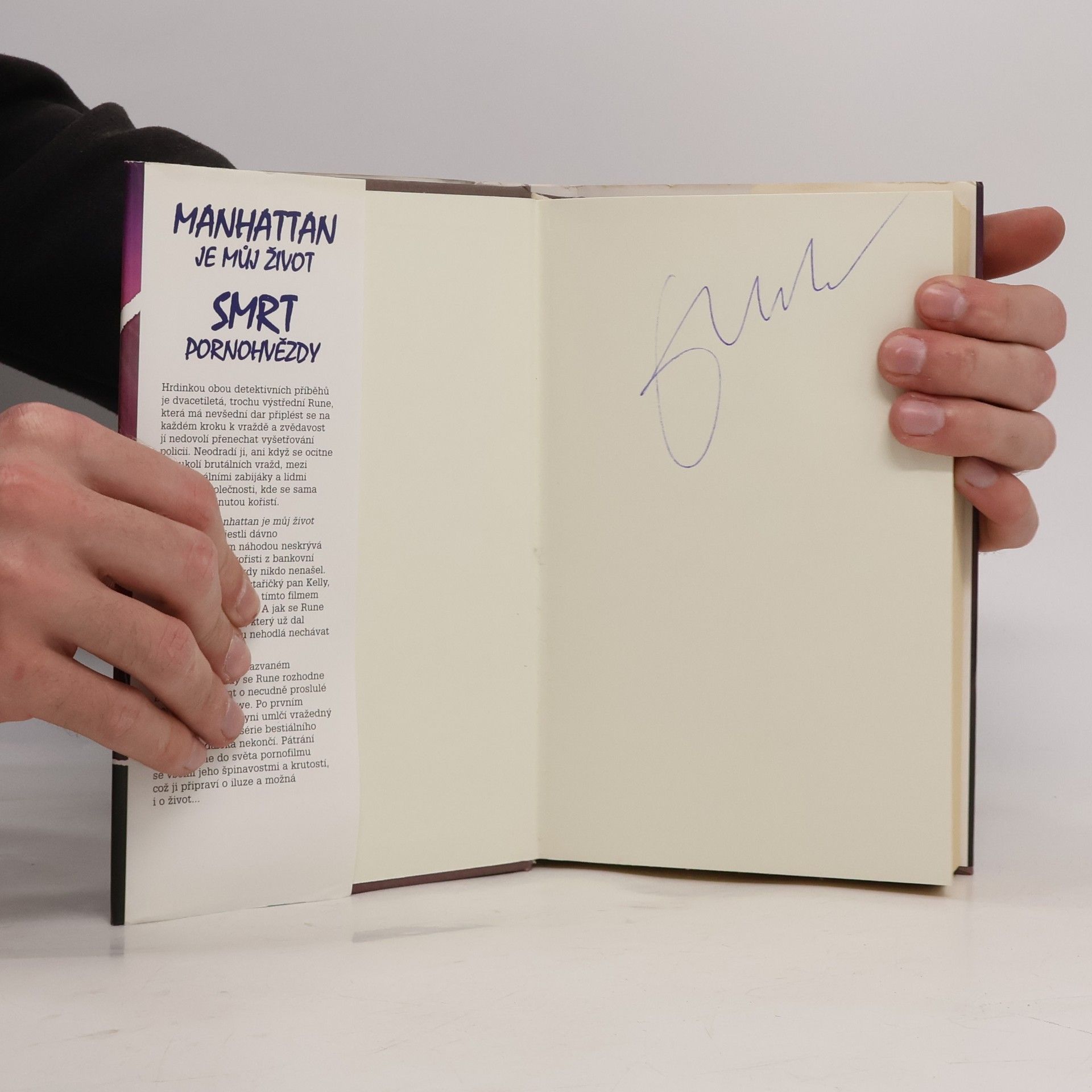 Hrdinkou dvou detektivních příběhů je dvacetiletá, trochu výstřední Rune, která se řízením osudu ocitne v soukolí brutálních vražd, mezi profesionálními zabijáky a lidmi z pokraje společnosti, kde se sama stává vyhlédnutou kořistí. V příběhu Manhattan je můj život Rune zjišťuje, jestli dávno zapomenutý film náhodou neskrývá klíč k milionové kořisti z bankovní loupeže, kterou nikdy nikdo nenašel. Proč byl zavražděn stařičký pan Kelly, který si videokazetu s tímto filmem půjčoval stále dokola? A jak se Rune vypořádá s vrahem, který už dal najevo, že za sebou nehodlá nechávat žádné svědky? V druhém příběhu nazvaném Smrt pornohvězdy se Rune rozhodne natočit dokument o necudně proslulé herečce Shelly Lowe. Po prvním setkání však umělkyni umlčí vražedný útok – a její smrtí série bestiálního násilí ani zdaleka nekončí. Pátrání vtáhne Rune do světa pornofilmu se všemi jeho špinavostmi a krutostí, což ji připraví o iluze a možná i o život...