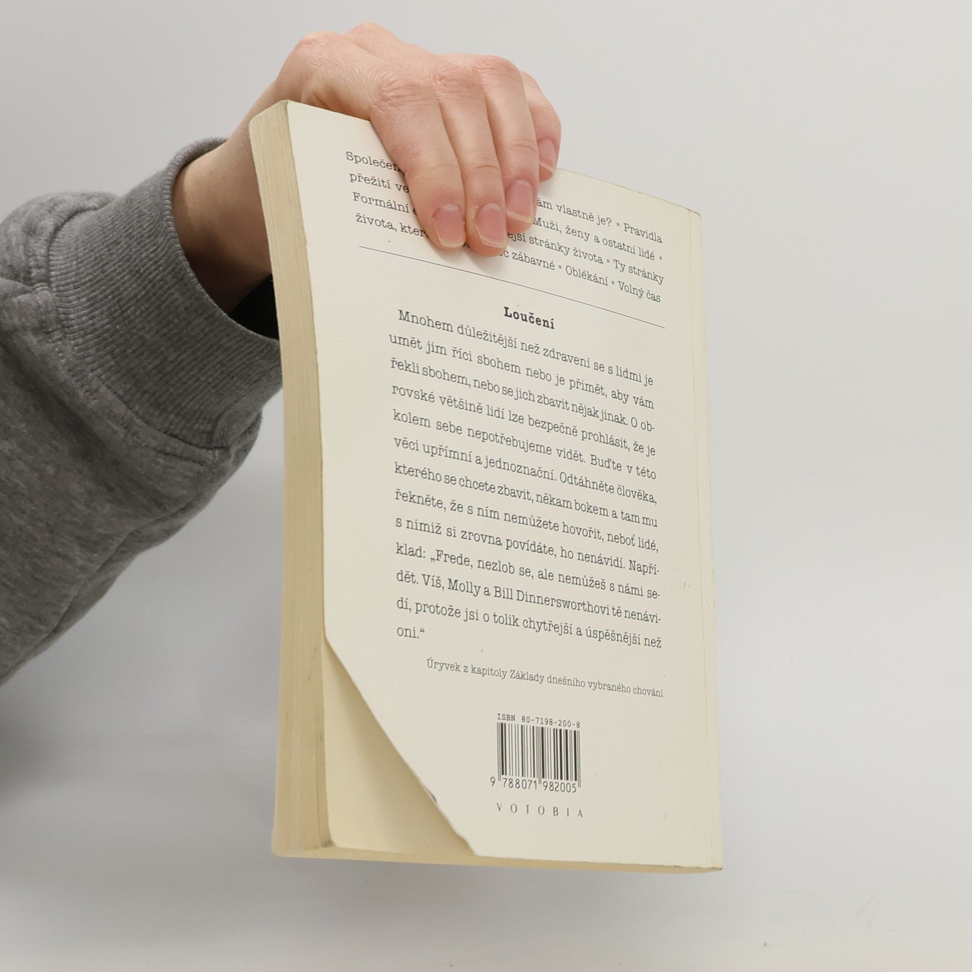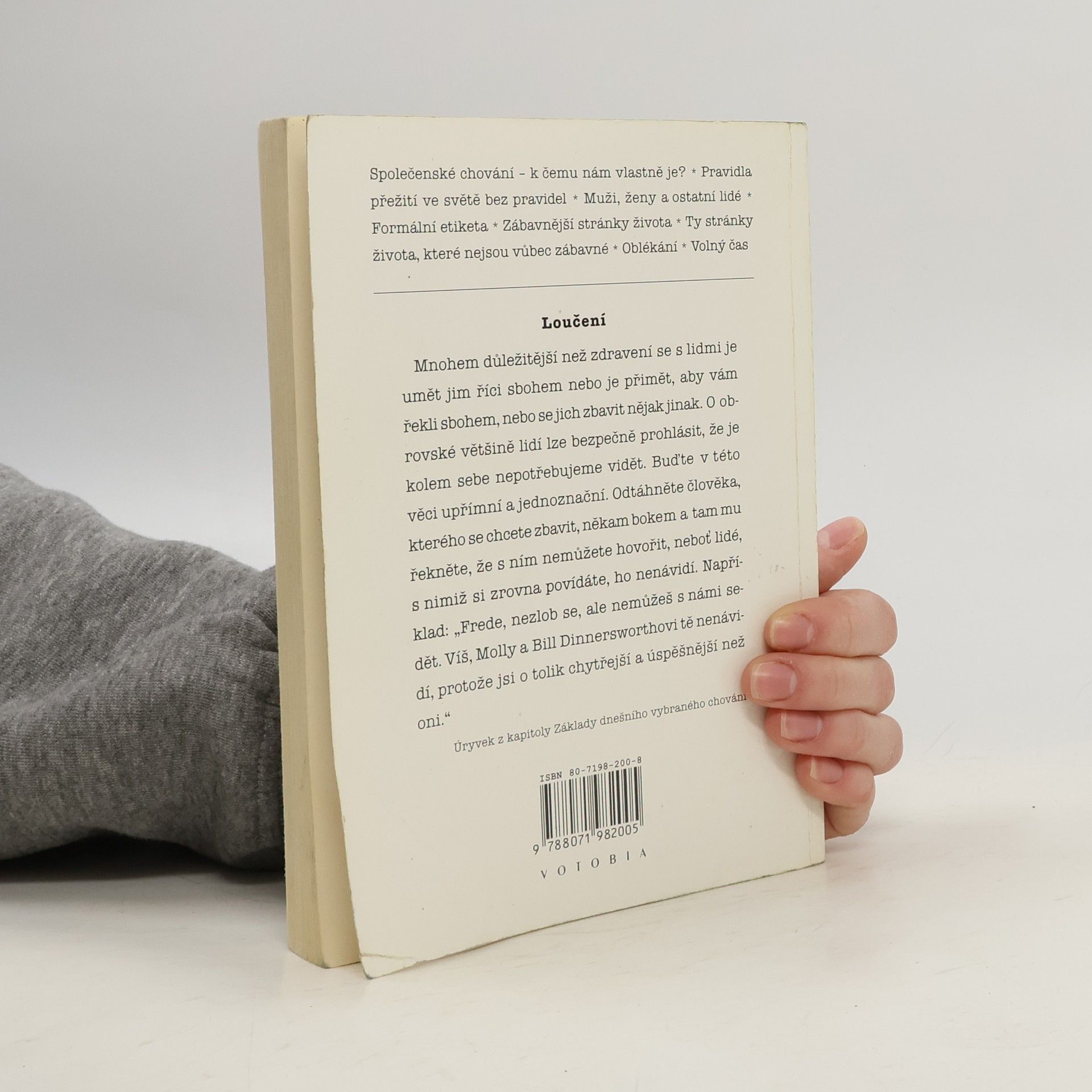 podtitul: Příručka etikety pro hulváty Pokračování úspěšného Průvodce domácností starého mládence Společenské chování – k čemu nám vlastně je? * Pravidla přežití ve světě bez pravidel * Muži, ženy a ostatní lidé * Formální etiketa * Zábavnější stránky života * Ty stránky života, které nejsou vůbec zábavné * Oblékání * Volný čas