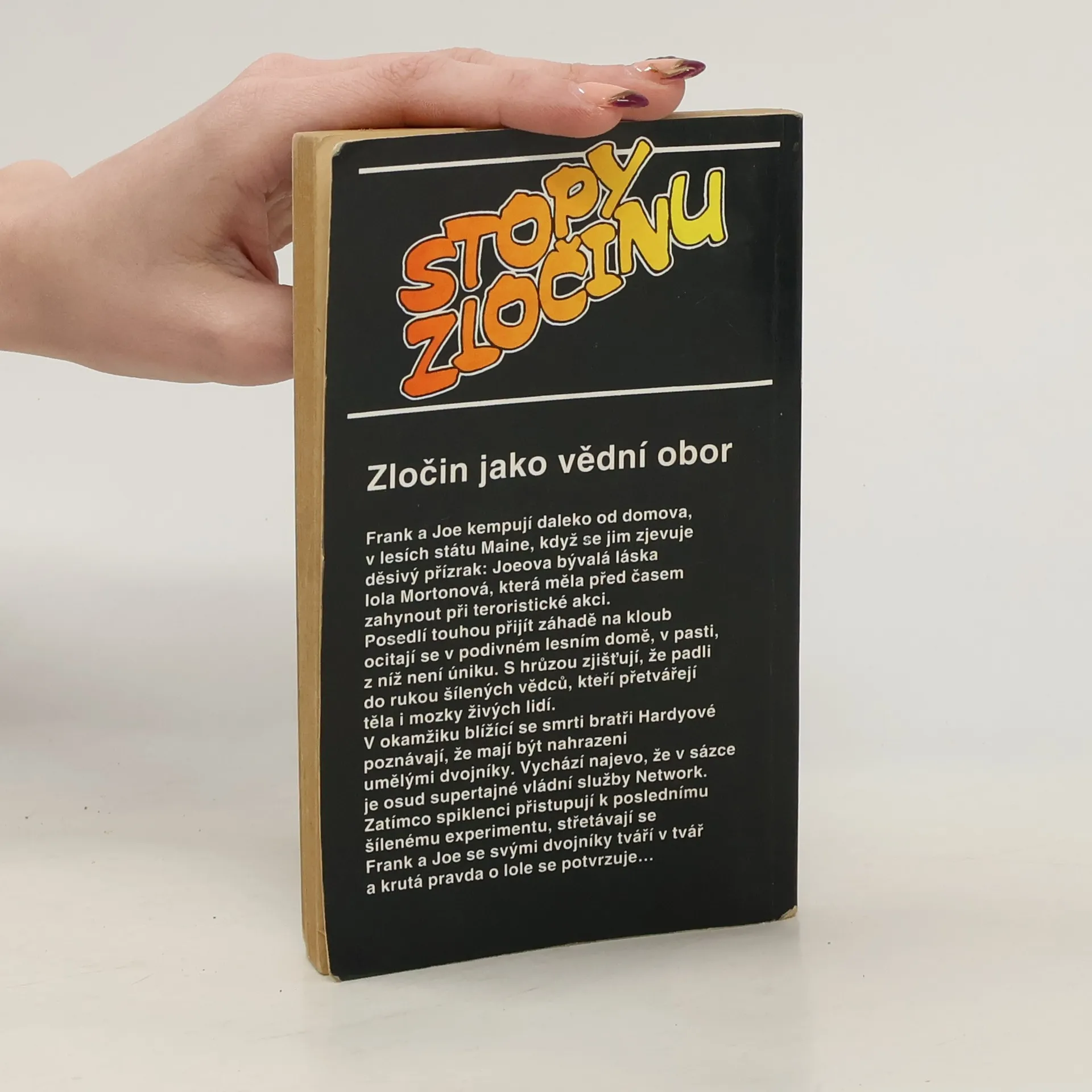 Zločin jako vědní obor. Frank a Joe kempují daleko od domova, v lesích státu Maine, když se jim zjevuje děsivý přízrak: Joeova bývalá láska Iola Mortonová, která měla před časem zahynout při teroristické akci. Posedlí touhou přijít záhadě na kloub ocitají se v podivném lesním domě, v pasti, z níž není úniku. S hrůzou zjišťují, že padli do rukou šílených vědců, kteří přetvářejí těla i mozky živých lidí. V okamžiku blížící se smrti bratři Hardyové poznávají, že mají být nahrazeni umělými dvojníky...... celý text