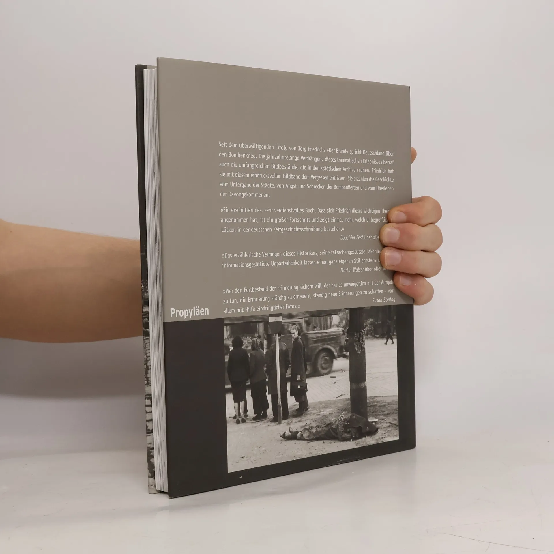 Seit dem überwältigenden Erfolg von Jörg Friedrichs Der Brand spricht Deutschland über den Bombenkrieg. Die jahrzehntelange Verdrängung dieses traumatischen Erlebnisses betraf auch die umfangreichen Bildbestände, die in den städtischen Archiven ruhen. Friedrich entreißt sie mit diesem bewegenden Bildband dem Vergessen. Die völlig unbekannten Fotos erzählen die Geschichte vom Untergang der Städte, von Angst und Schrecken der Bombardierten und vom Überleben der Davongekommenen.