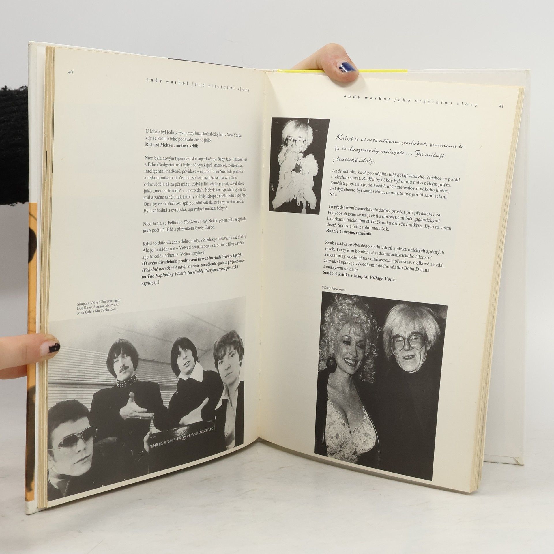 Soupis výroků a citátů hlavního představitele POP-artu Andyho Warhola. Dále útržky z jeho života a rozhovory se slavnými osobnostmi + mnoho fotografií.