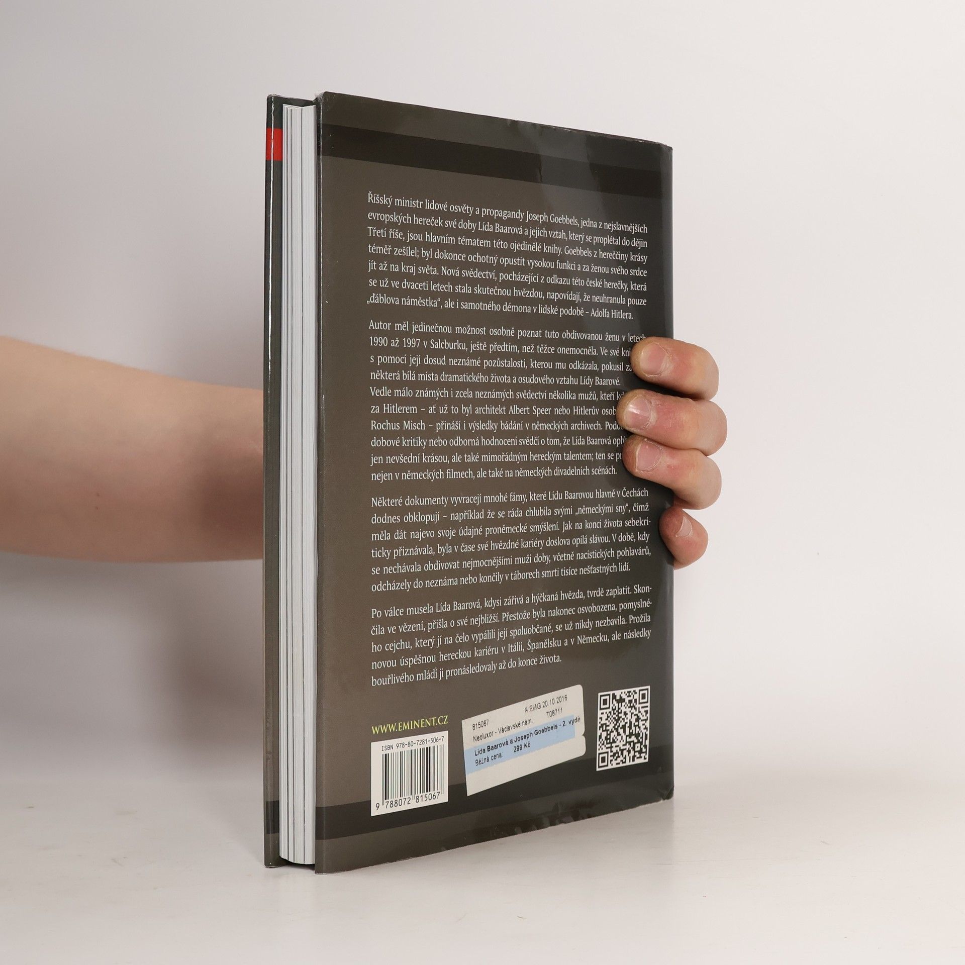 Reichsminister Joseph Goebbels a slavná česká herečka Lída Baarová tvoří ústřední postavy této knihy, která zkoumá jejich fascinující a tragický vztah zasazený do kontextu nacistického Německa. Goebbels byl tak okouzlen její krásou, že byl ochoten opustit svou mocnou pozici, aby ji následoval. Nová svědectví z Baarové odkazu naznačují, že okouzlila nejen Goebbelse, ale i Adolfa Hitlera. Autor měl jedinečnou příležitost poznat Baarovou v letech 1990 až 1997 a využil její dosud neznámou pozůstalost k prozkoumání jejího dramatického života a osudového vztahu. Kniha zahrnuje svědectví mužů blízkých Hitlerovi, jako byl architekt Albert Speer nebo osobní strážce Rochus Misch, a přináší výsledky bádání v německých archivech. Kritiky a odborné hodnocení ukazují, že Baarová měla nejen výjimečnou krásu, ale i herecký talent, který se projevoval na německých filmových plátnech a divadelních scénách. Dokumenty vyvracejí fámy o jejím proněmeckém smýšlení a odhalují, že byla opilá slávou v době, kdy tisíce lidí trpěly. Po válce čelila tvrdým následkům, včetně vězení a ztráty blízkých. I když se jí podařilo obnovit kariéru v Itálii a Německu, psychické následky jí zůstaly po celý život. Kniha je doplněna unikátními barevnými přílohami.